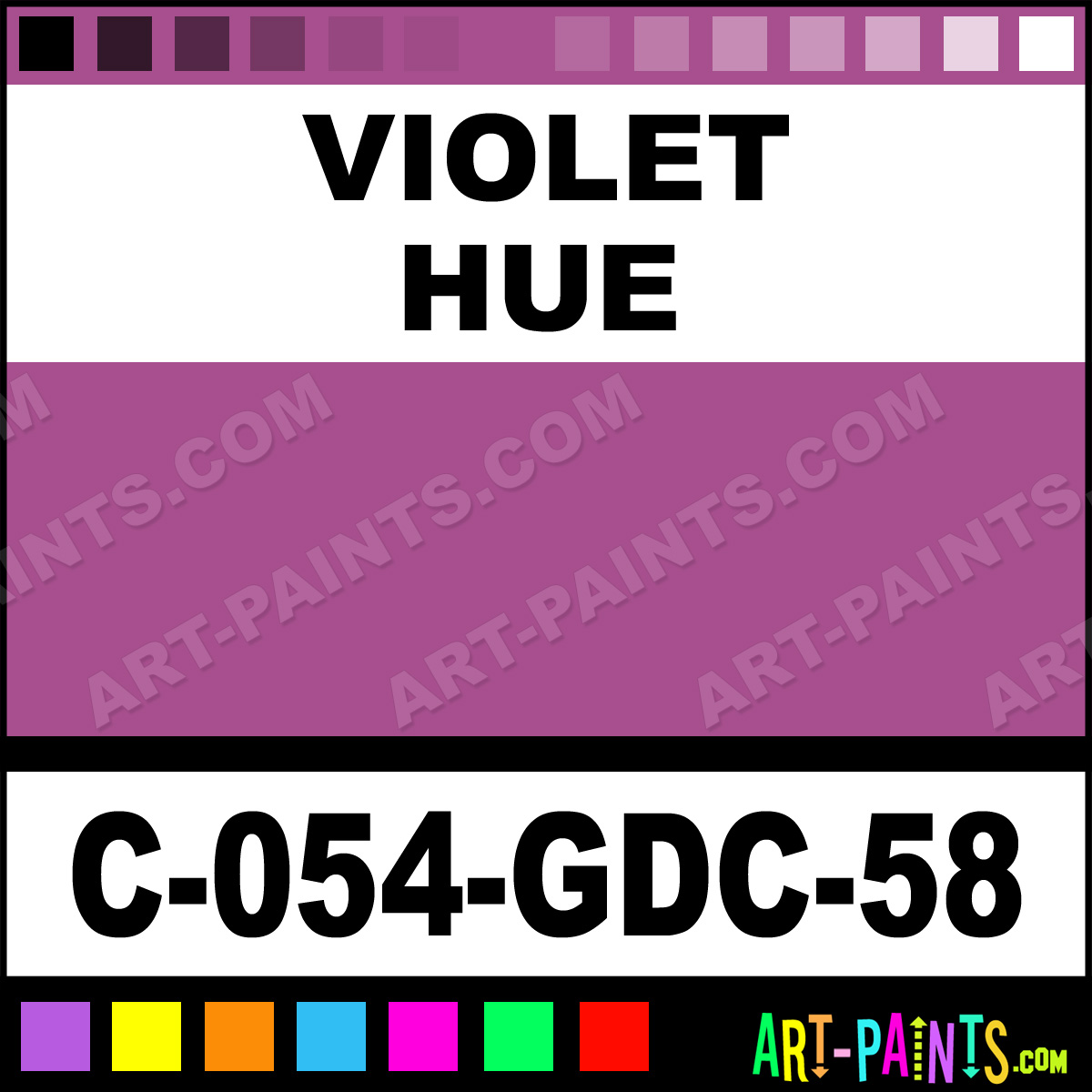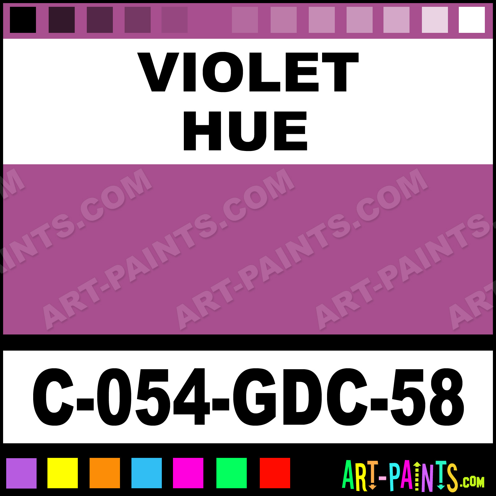 This beautiful Majolica Gloss Ceramic shade is called Violet, and comes from a company called Amaco. Their product number, along with the HTML color code, RGB, and CMYK codes are listed below. This Beautiful Shade of Violet and others can be found in the Amaco Majolica Gloss Art Paint Gallery! Also be sure to browse through the other wonderful Professional Color Galleries to see more of Amaco Majolica Gloss Ceramic Porcelain, Pottery, Bisque, Greenware Brand Paints and other Paint Manufacturers. And as always, Paint Paint Paint! -Art-Paints.com
