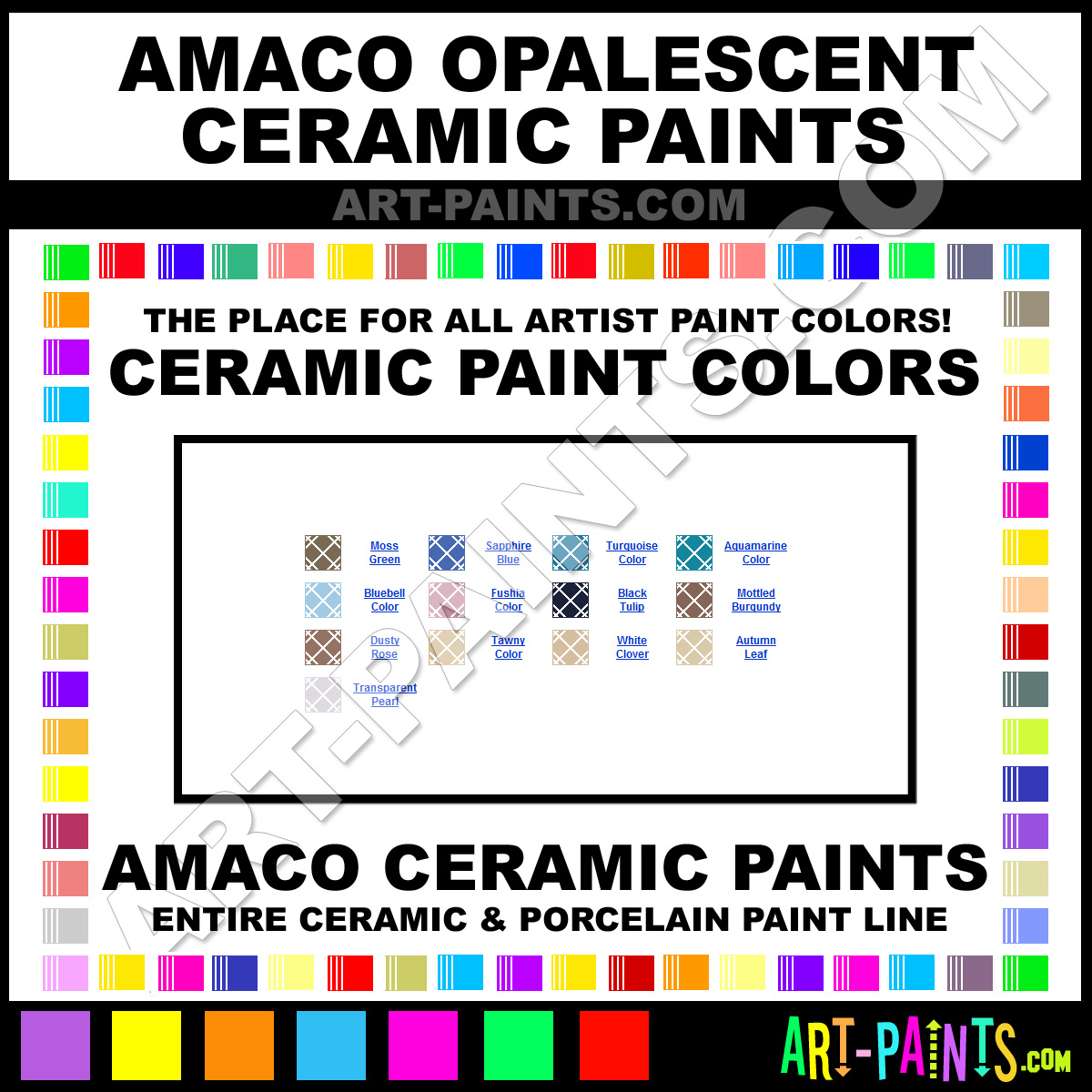 Amaco knows Ceramic paints! They make a wonderful brand of paint called Amaco Opalescent Ceramic Porcelain Colors that suits all types of artists. They strive to perfect the process of color and are one of the most popular Ceramic Porcelain Paint Brand companies in the world. Enjoy their entire paint brand collection from the list below. Amaco makes wonderful Artists Paints that everyone is sure to enjoy! Choose an Ceramic Porcelain Paint Color below to view that Hue and all their great related color paints. Paint on!     -Art-Paints.com