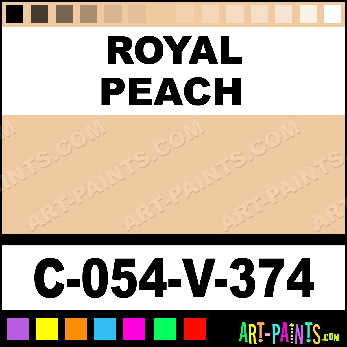 This beautiful Velvet Underglaze Ceramic shade is called Royal Peach, and comes from a company called Amaco. Their product number, along with the HTML color code, RGB, and CMYK codes are listed below. This Beautiful Shade of Royal Peach and others can be found in the Amaco Velvet Underglaze Art Paint Gallery! Also be sure to browse through the other wonderful Professional Color Galleries to see more of Amaco Velvet Underglaze Ceramic Porcelain, Pottery, Bisque, Greenware Brand Paints and other Paint Manufacturers. And as always, Paint Paint Paint! -Art-Paints.com