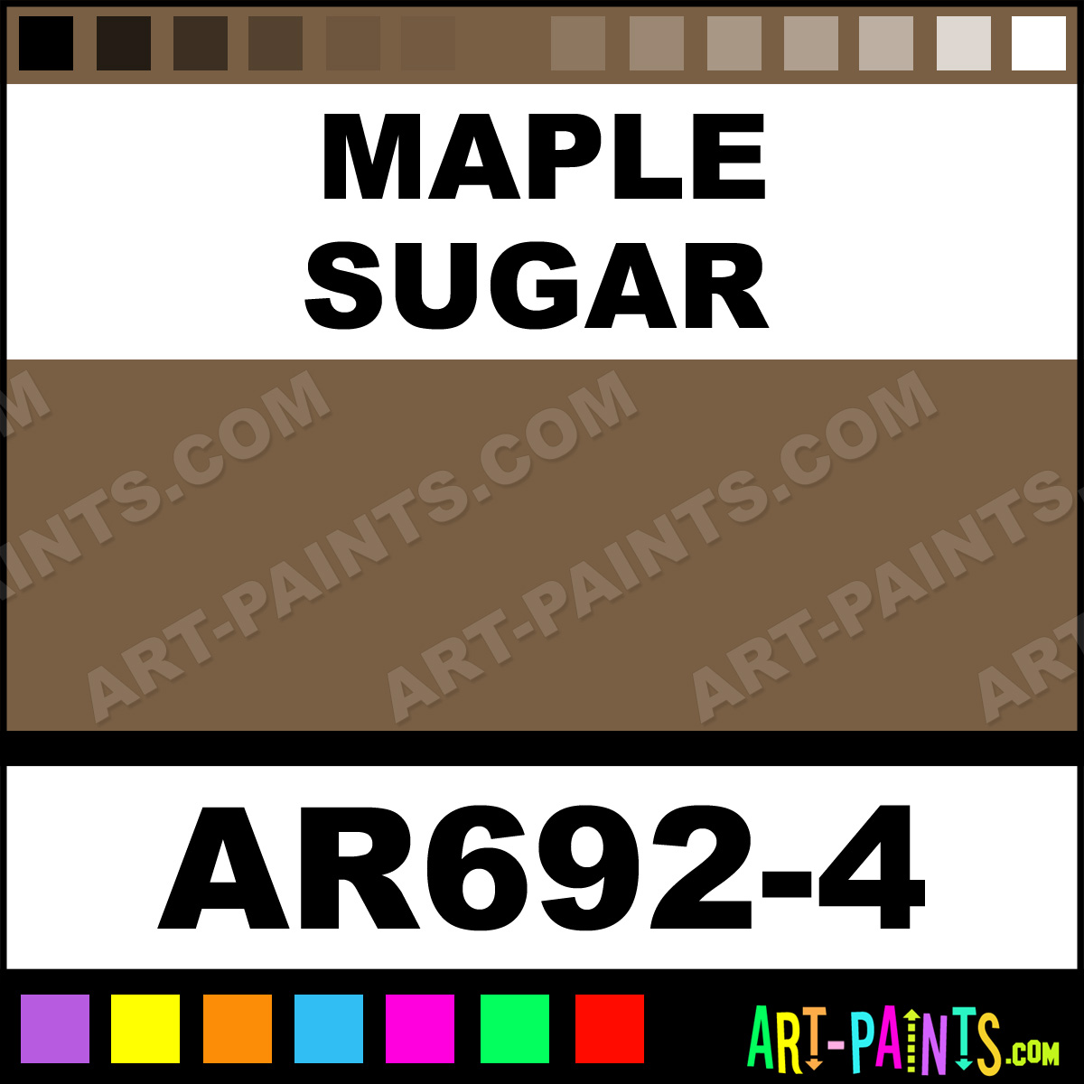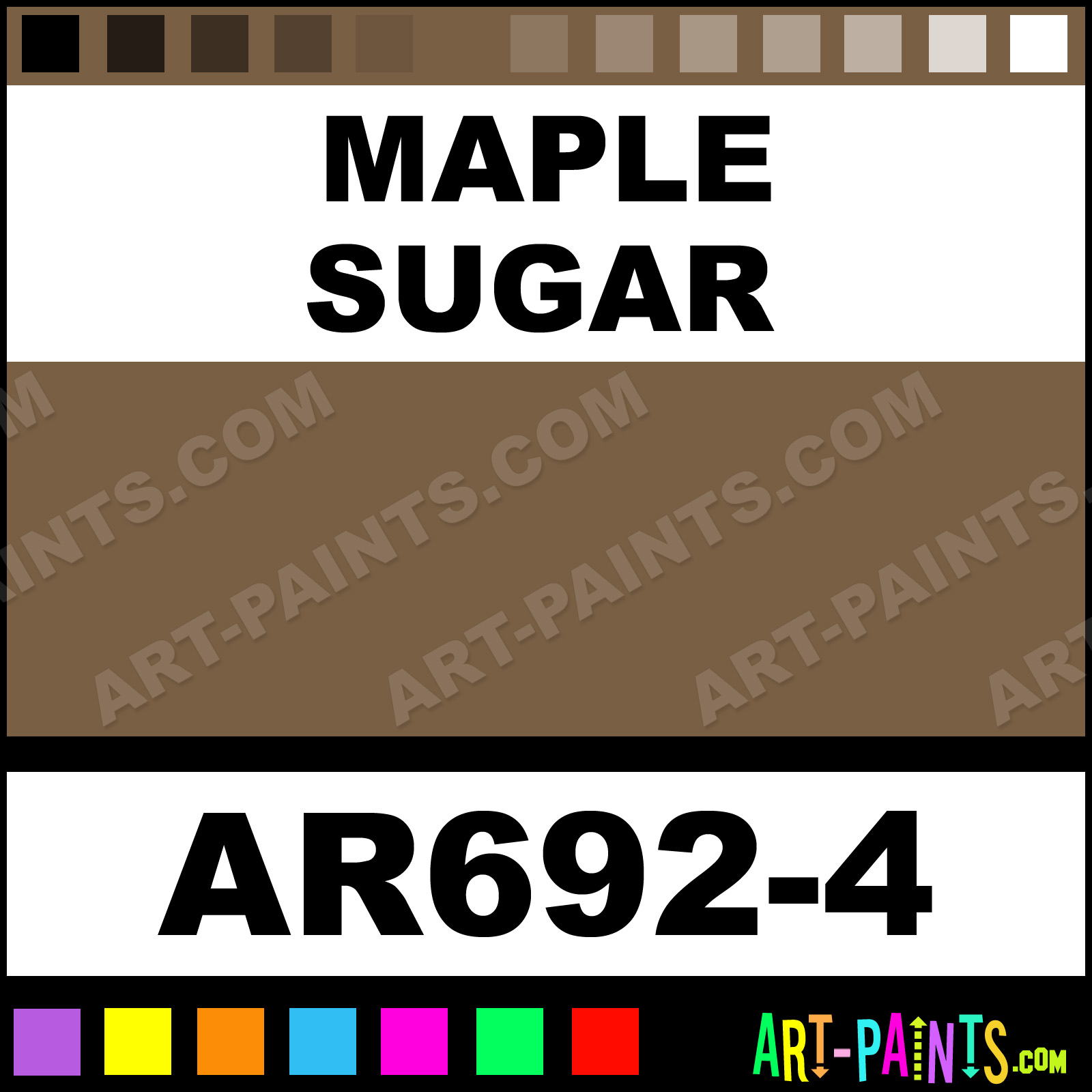 This beautiful Art Glazes Ceramic shade is called Maple Sugar, and comes from a company called Duncan. Their product number, along with the HTML color code, RGB, and CMYK codes are listed below. This Beautiful Shade of Maple Sugar and others can be found in the Duncan Art Glazes Art Paint Gallery! Also be sure to browse through the other wonderful Professional Color Galleries to see more of Duncan Art Glazes Ceramic Porcelain, Pottery, Bisque, Greenware Brand Paints and other Paint Manufacturers. And as always, Paint Paint Paint! -Art-Paints.com