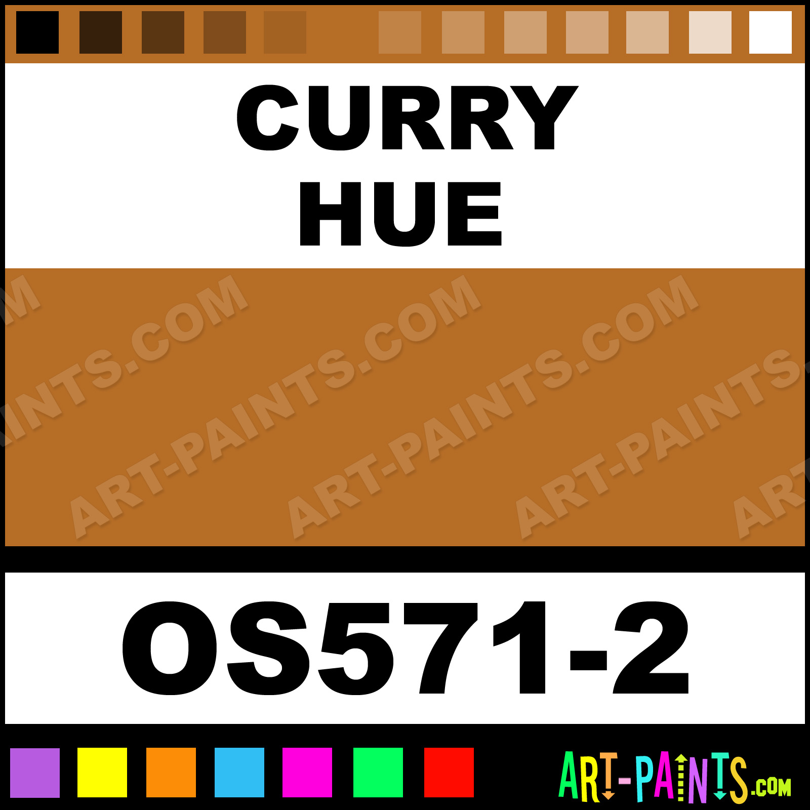 This beautiful Bisque Stain Ceramic shade is called Curry, and comes from a company called Duncan. Their product number, along with the HTML color code, RGB, and CMYK codes are listed below. This Beautiful Shade of Curry and others can be found in the Duncan Bisque Stain Art Paint Gallery! Also be sure to browse through the other wonderful Professional Color Galleries to see more of Duncan Bisque Stain Ceramic Porcelain, Pottery, Bisque, Greenware Brand Paints and other Paint Manufacturers. And as always, Paint Paint Paint! -Art-Paints.com