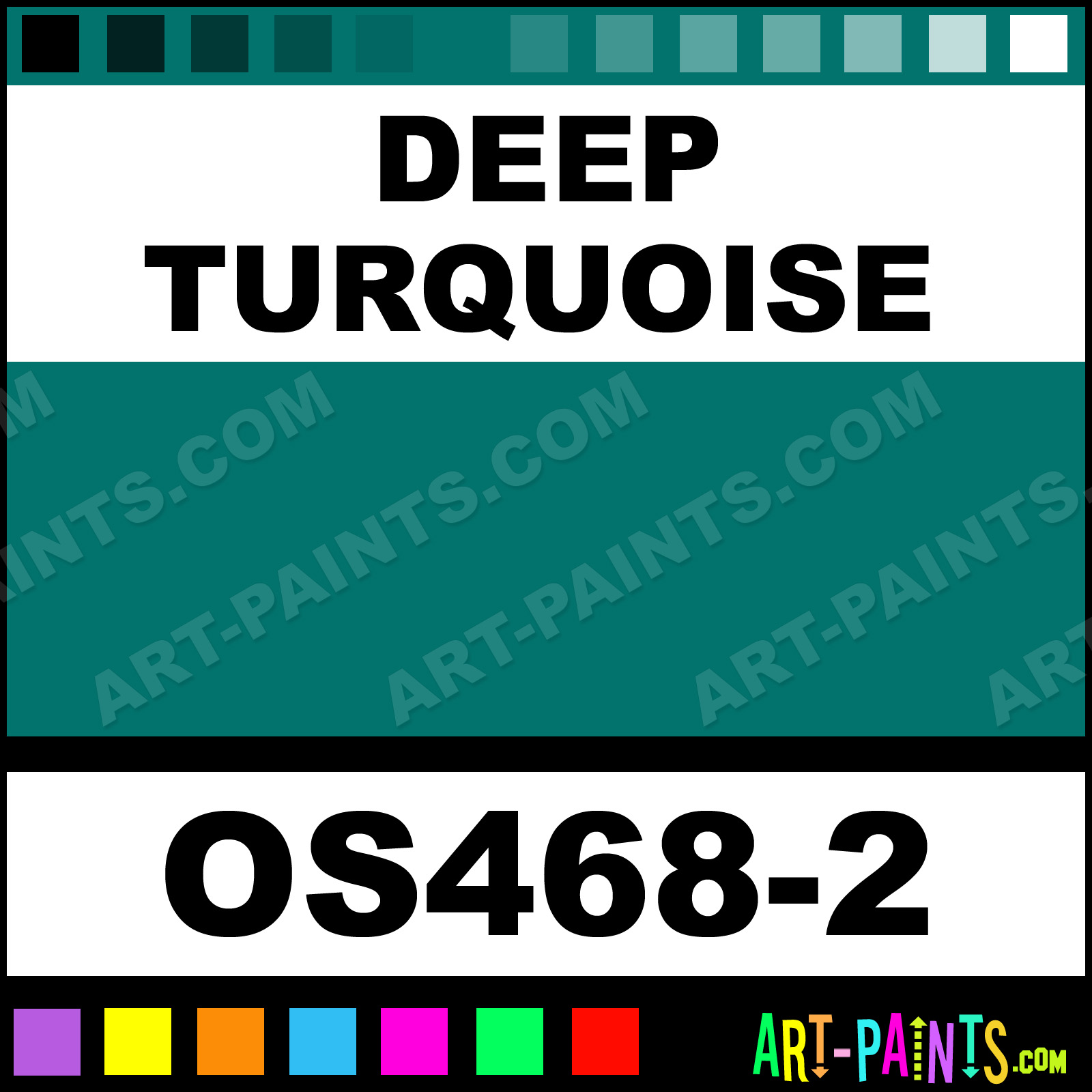 This beautiful Bisque Stain Ceramic shade is called Deep Turquoise, and comes from a company called Duncan. Their product number, along with the HTML color code, RGB, and CMYK codes are listed below. This Beautiful Shade of Deep Turquoise and others can be found in the Duncan Bisque Stain Art Paint Gallery! Also be sure to browse through the other wonderful Professional Color Galleries to see more of Duncan Bisque Stain Ceramic Porcelain, Pottery, Bisque, Greenware Brand Paints and other Paint Manufacturers. And as always, Paint Paint Paint! -Art-Paints.com