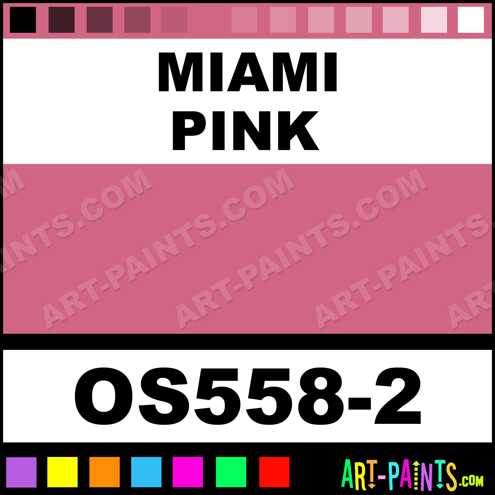 This beautiful Bisque Stain Ceramic shade is called Miami Pink, and comes from a company called Duncan. Their product number, along with the HTML color code, RGB, and CMYK codes are listed below. This Beautiful Shade of Miami Pink and others can be found in the Duncan Bisque Stain Art Paint Gallery! Also be sure to browse through the other wonderful Professional Color Galleries to see more of Duncan Bisque Stain Ceramic Porcelain, Pottery, Bisque, Greenware Brand Paints and other Paint Manufacturers. And as always, Paint Paint Paint! -Art-Paints.com
