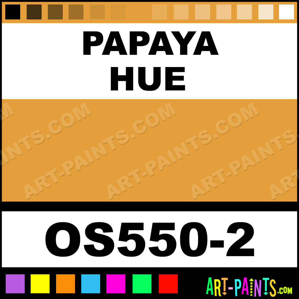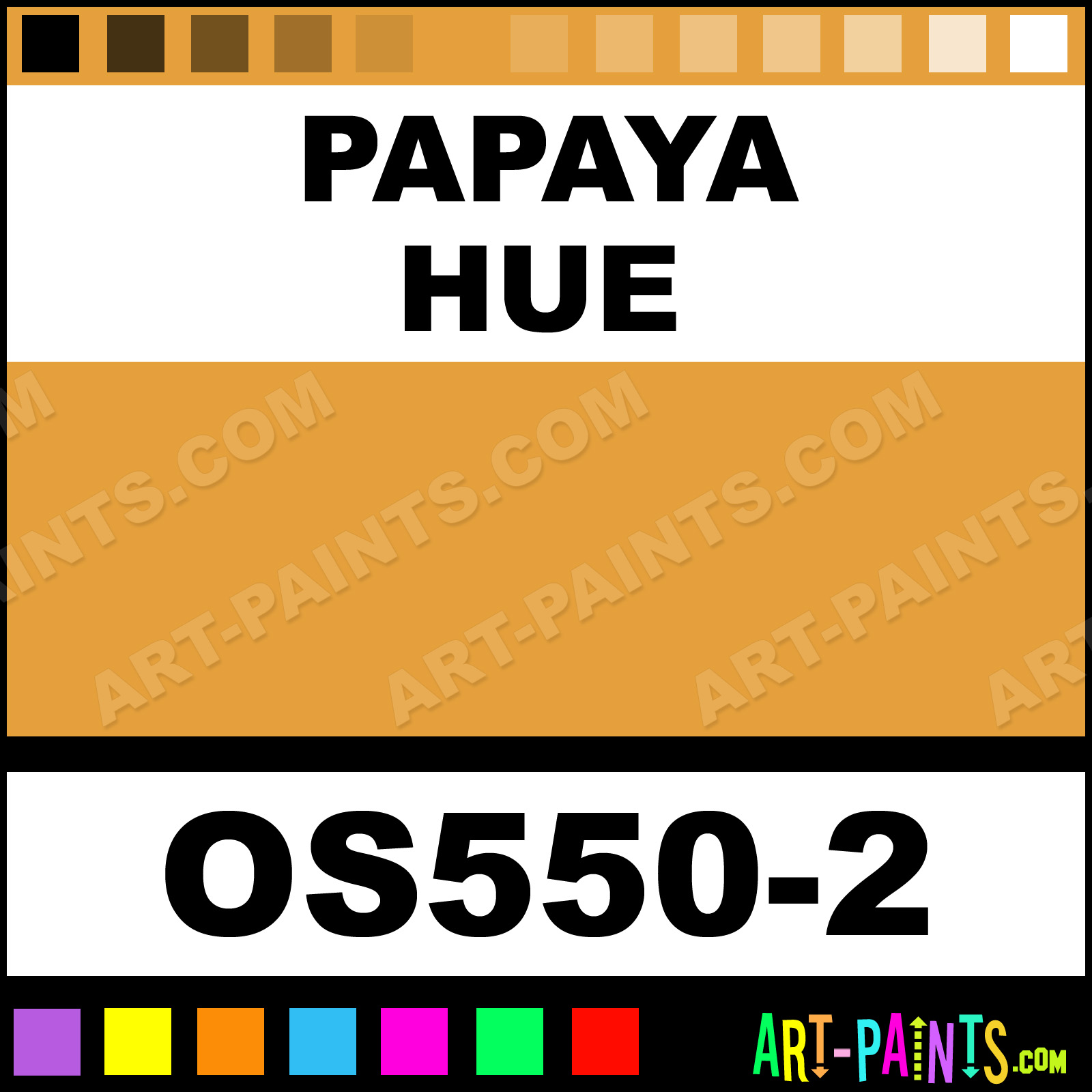 This beautiful Bisque Stain Ceramic shade is called Papaya, and comes from a company called Duncan. Their product number, along with the HTML color code, RGB, and CMYK codes are listed below. This Beautiful Shade of Papaya and others can be found in the Duncan Bisque Stain Art Paint Gallery! Also be sure to browse through the other wonderful Professional Color Galleries to see more of Duncan Bisque Stain Ceramic Porcelain, Pottery, Bisque, Greenware Brand Paints and other Paint Manufacturers. And as always, Paint Paint Paint! -Art-Paints.com