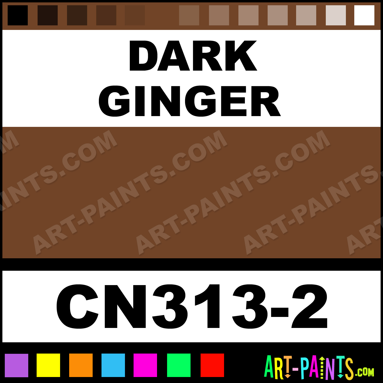 This beautiful Concepts Underglaze Ceramic shade is called Dark Ginger, and comes from a company called Duncan. Their product number, along with the HTML color code, RGB, and CMYK codes are listed below. This Beautiful Shade of Dark Ginger and others can be found in the Duncan Concepts Underglaze Art Paint Gallery! Also be sure to browse through the other wonderful Professional Color Galleries to see more of Duncan Concepts Underglaze Ceramic Porcelain, Pottery, Bisque, Greenware Brand Paints and other Paint Manufacturers. And as always, Paint Paint Paint! -Art-Paints.com