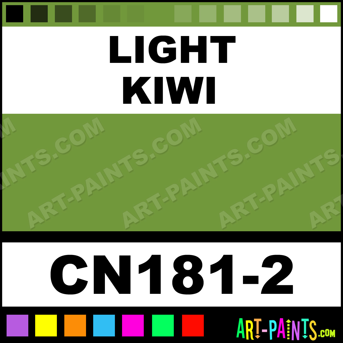 This beautiful Concepts Underglaze Ceramic shade is called Light Kiwi, and comes from a company called Duncan. Their product number, along with the HTML color code, RGB, and CMYK codes are listed below. This Beautiful Shade of Light Kiwi and others can be found in the Duncan Concepts Underglaze Art Paint Gallery! Also be sure to browse through the other wonderful Professional Color Galleries to see more of Duncan Concepts Underglaze Ceramic Porcelain, Pottery, Bisque, Greenware Brand Paints and other Paint Manufacturers. And as always, Paint Paint Paint! -Art-Paints.com