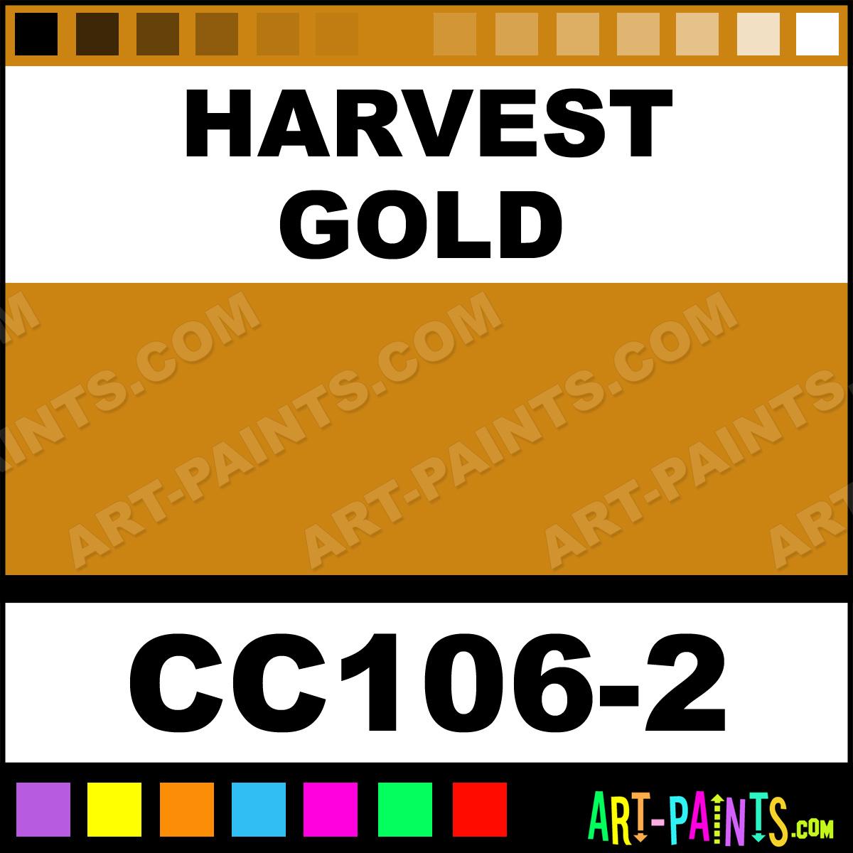 This beautiful Cover Coat Underglaze Ceramic shade is called Harvest Gold, and comes from a company called Duncan. Their product number, along with the HTML color code, RGB, and CMYK codes are listed below. This Beautiful Shade of Harvest Gold and others can be found in the Duncan Cover Coat Underglaze Art Paint Gallery! Also be sure to browse through the other wonderful Professional Color Galleries to see more of Duncan Cover Coat Underglaze Ceramic Porcelain, Pottery, Bisque, Greenware Brand Paints and other Paint Manufacturers. And as always, Paint Paint Paint! -Art-Paints.com