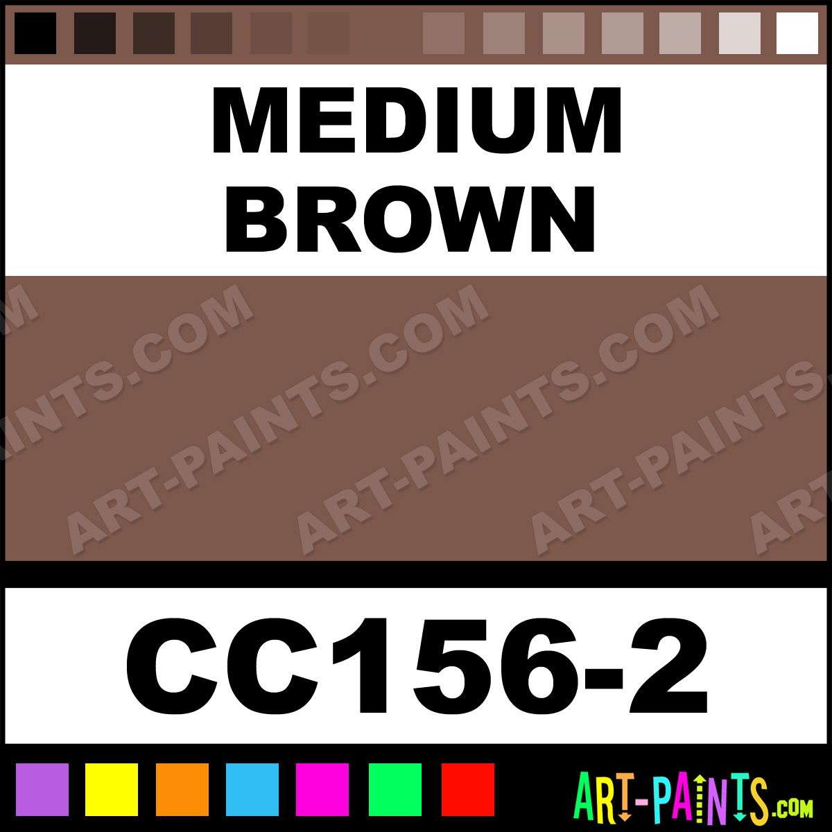 This beautiful Cover Coat Underglaze Ceramic shade is called Medium Brown, and comes from a company called Duncan. Their product number, along with the HTML color code, RGB, and CMYK codes are listed below. This Beautiful Shade of Medium Brown and others can be found in the Duncan Cover Coat Underglaze Art Paint Gallery! Also be sure to browse through the other wonderful Professional Color Galleries to see more of Duncan Cover Coat Underglaze Ceramic Porcelain, Pottery, Bisque, Greenware Brand Paints and other Paint Manufacturers. And as always, Paint Paint Paint! -Art-Paints.com