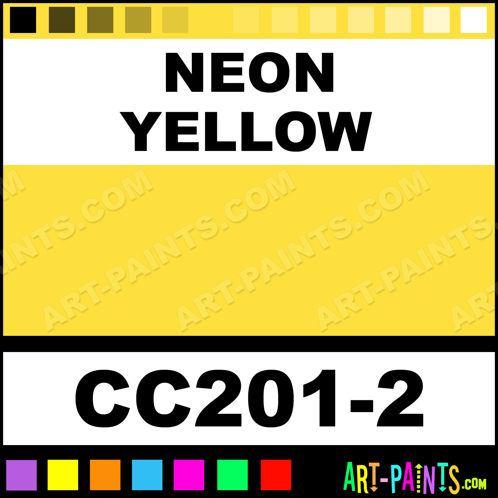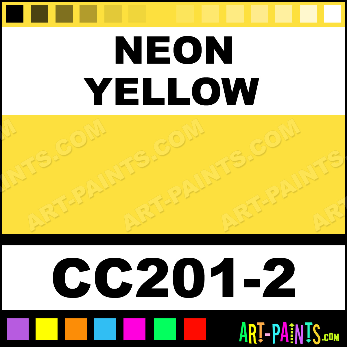 This beautiful Cover Coat Underglaze Ceramic shade is called Neon Yellow, and comes from a company called Duncan. Their product number, along with the HTML color code, RGB, and CMYK codes are listed below. This Beautiful Shade of Neon Yellow and others can be found in the Duncan Cover Coat Underglaze Art Paint Gallery! Also be sure to browse through the other wonderful Professional Color Galleries to see more of Duncan Cover Coat Underglaze Ceramic Porcelain, Pottery, Bisque, Greenware Brand Paints and other Paint Manufacturers. And as always, Paint Paint Paint! -Art-Paints.com