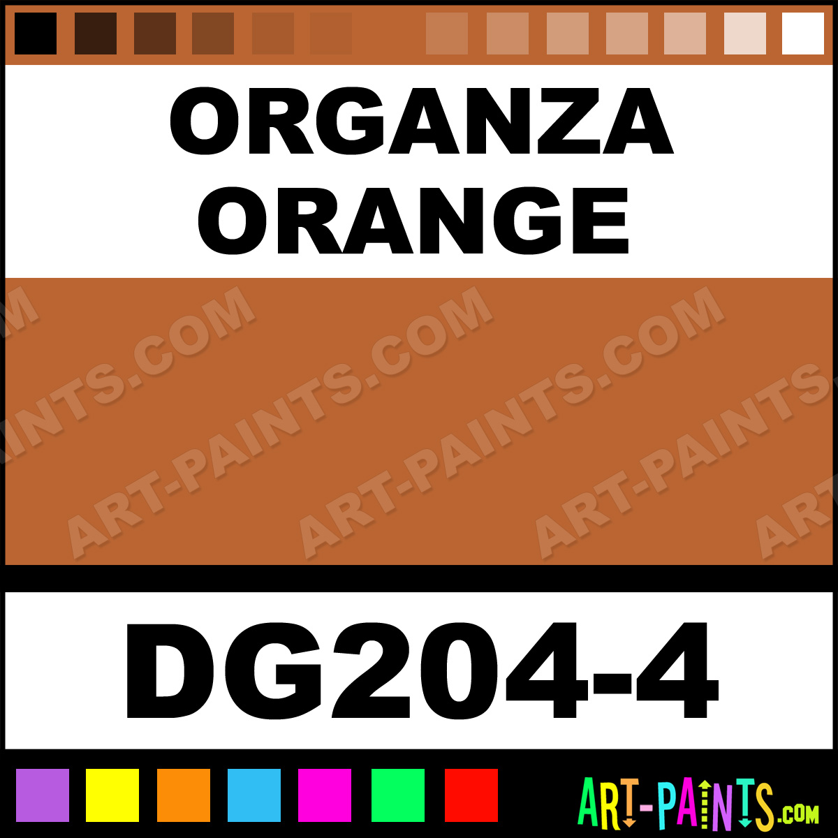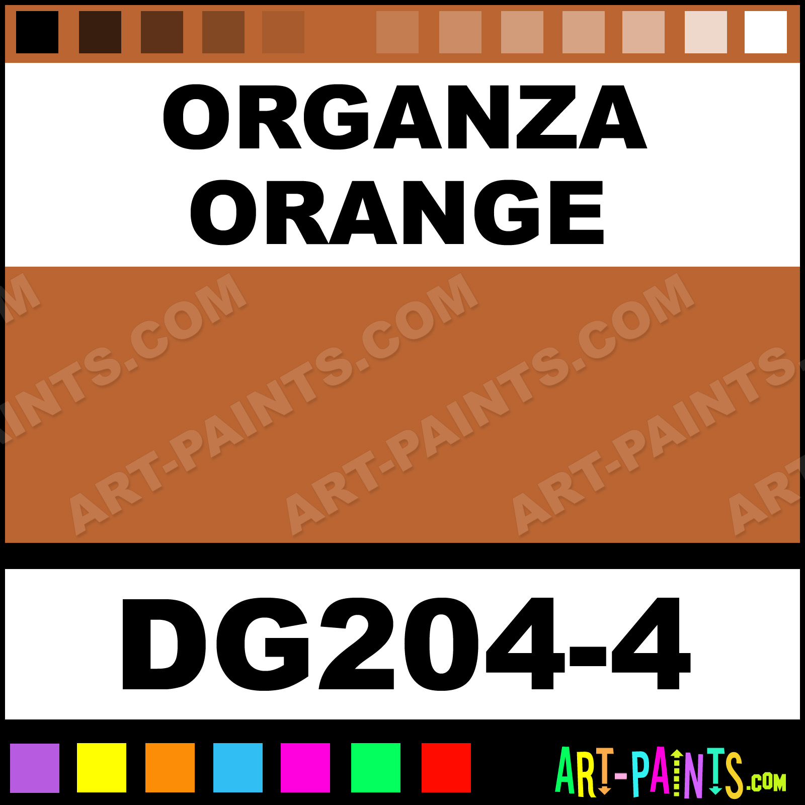 This beautiful Designer Glaze Ceramic shade is called Organza Orange, and comes from a company called Duncan. Their product number, along with the HTML color code, RGB, and CMYK codes are listed below. This Beautiful Shade of Organza Orange and others can be found in the Duncan Designer Glaze Art Paint Gallery! Also be sure to browse through the other wonderful Professional Color Galleries to see more of Duncan Designer Glaze Ceramic Porcelain, Pottery, Bisque, Greenware Brand Paints and other Paint Manufacturers. And as always, Paint Paint Paint! -Art-Paints.com