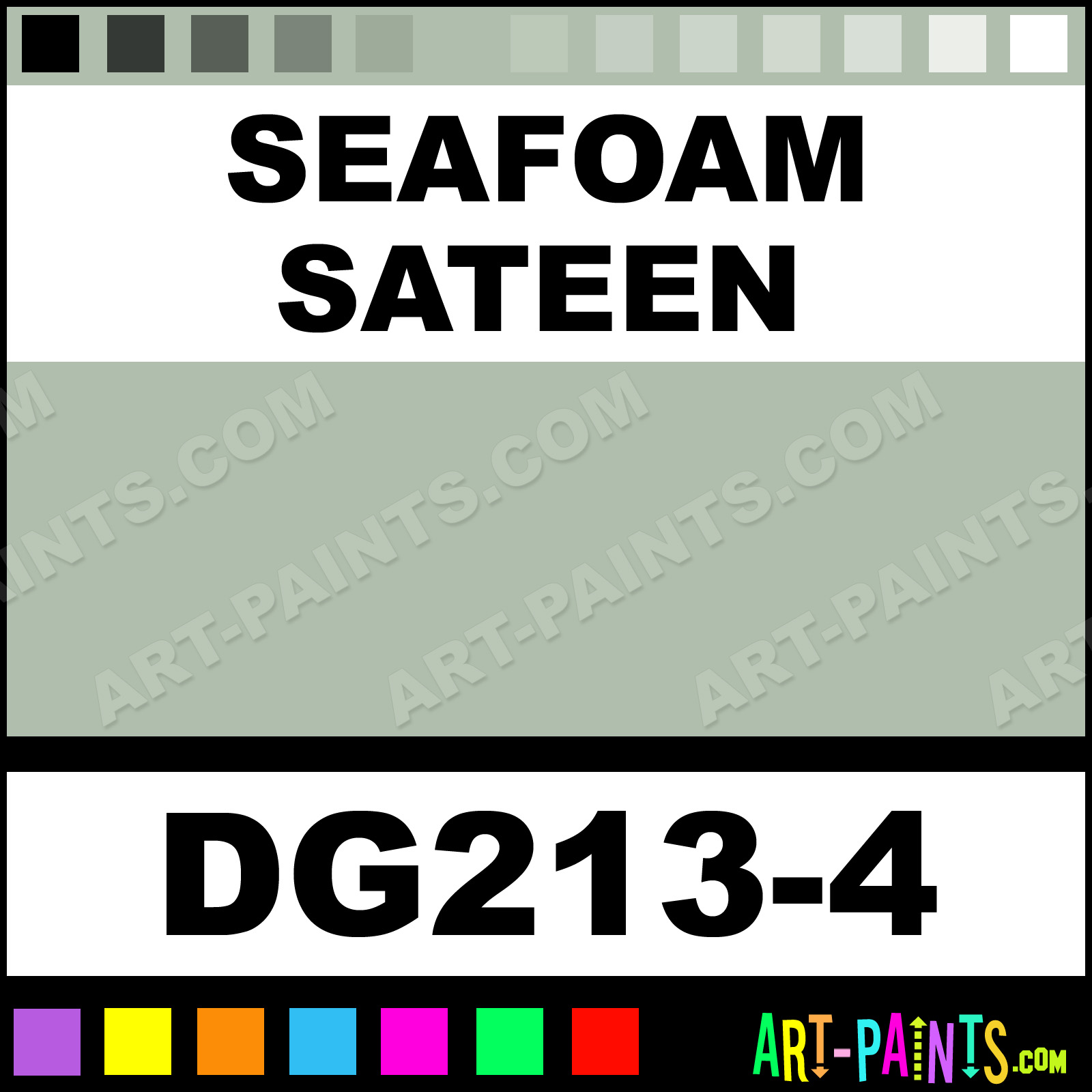 This beautiful Designer Glaze Ceramic shade is called Seafoam Sateen, and comes from a company called Duncan. Their product number, along with the HTML color code, RGB, and CMYK codes are listed below. This Beautiful Shade of Seafoam Sateen and others can be found in the Duncan Designer Glaze Art Paint Gallery! Also be sure to browse through the other wonderful Professional Color Galleries to see more of Duncan Designer Glaze Ceramic Porcelain, Pottery, Bisque, Greenware Brand Paints and other Paint Manufacturers. And as always, Paint Paint Paint! -Art-Paints.com
