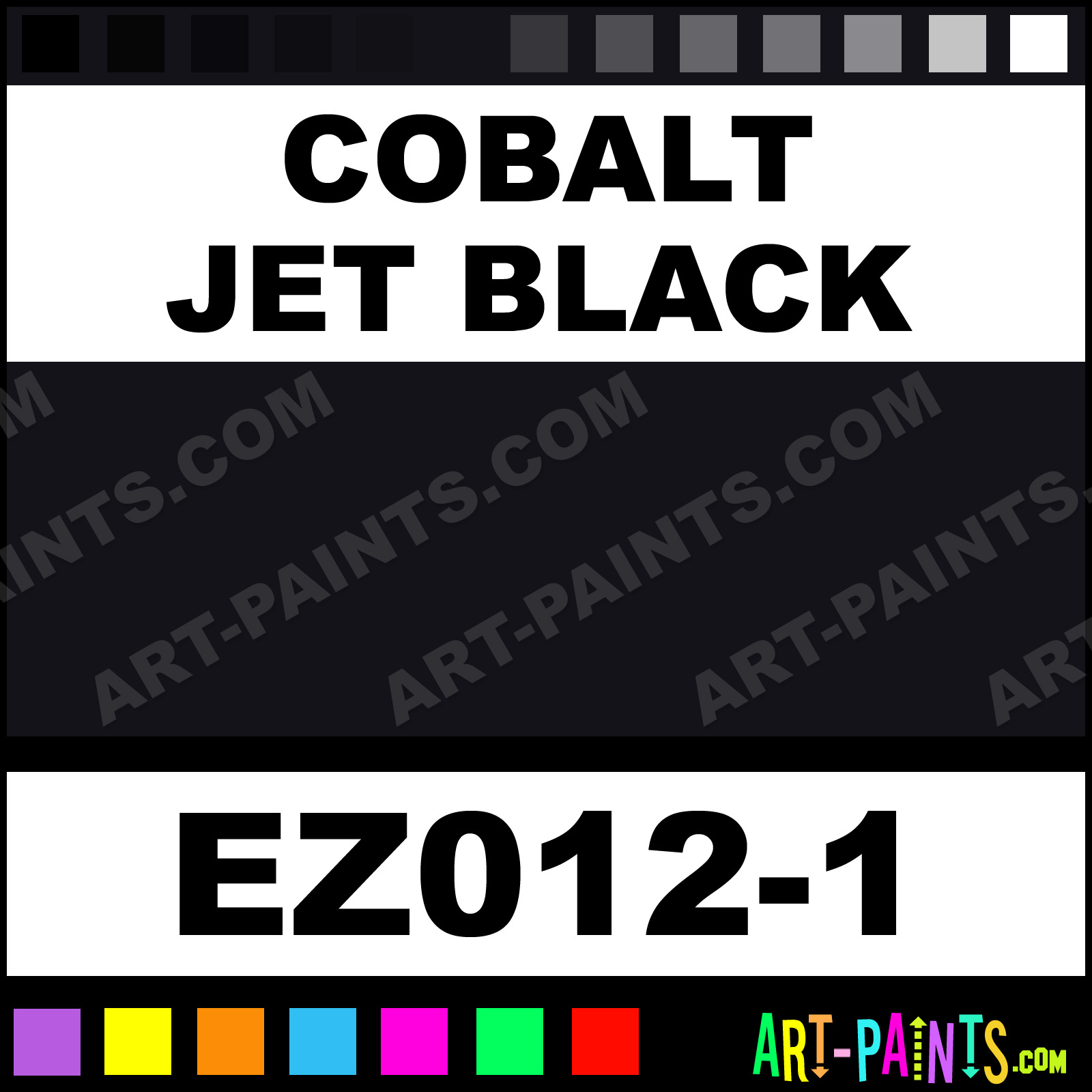 This beautiful EZ Stroke Ceramic shade is called Cobalt Jet Black, and comes from a company called Duncan. Their product number, along with the HTML color code, RGB, and CMYK codes are listed below. This Beautiful Shade of Cobalt Jet Black and others can be found in the Duncan EZ Stroke Art Paint Gallery! Also be sure to browse through the other wonderful Professional Color Galleries to see more of Duncan EZ Stroke Ceramic Porcelain, Pottery, Bisque, Greenware Brand Paints and other Paint Manufacturers. And as always, Paint Paint Paint! -Art-Paints.com