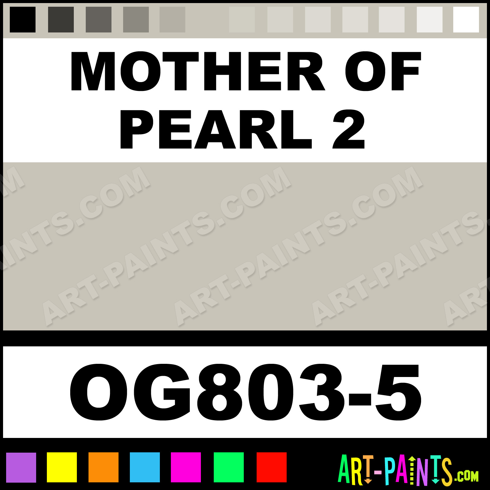This beautiful Overglazes Ceramic shade is called Mother Of Pearl 2, and comes from a company called Duncan. Their product number, along with the HTML color code, RGB, and CMYK codes are listed below. This Beautiful Shade of Mother Of Pearl 2 and others can be found in the Duncan Overglazes Art Paint Gallery! Also be sure to browse through the other wonderful Professional Color Galleries to see more of Duncan Overglazes Ceramic Porcelain, Pottery, Bisque, Greenware Brand Paints and other Paint Manufacturers. And as always, Paint Paint Paint! -Art-Paints.com