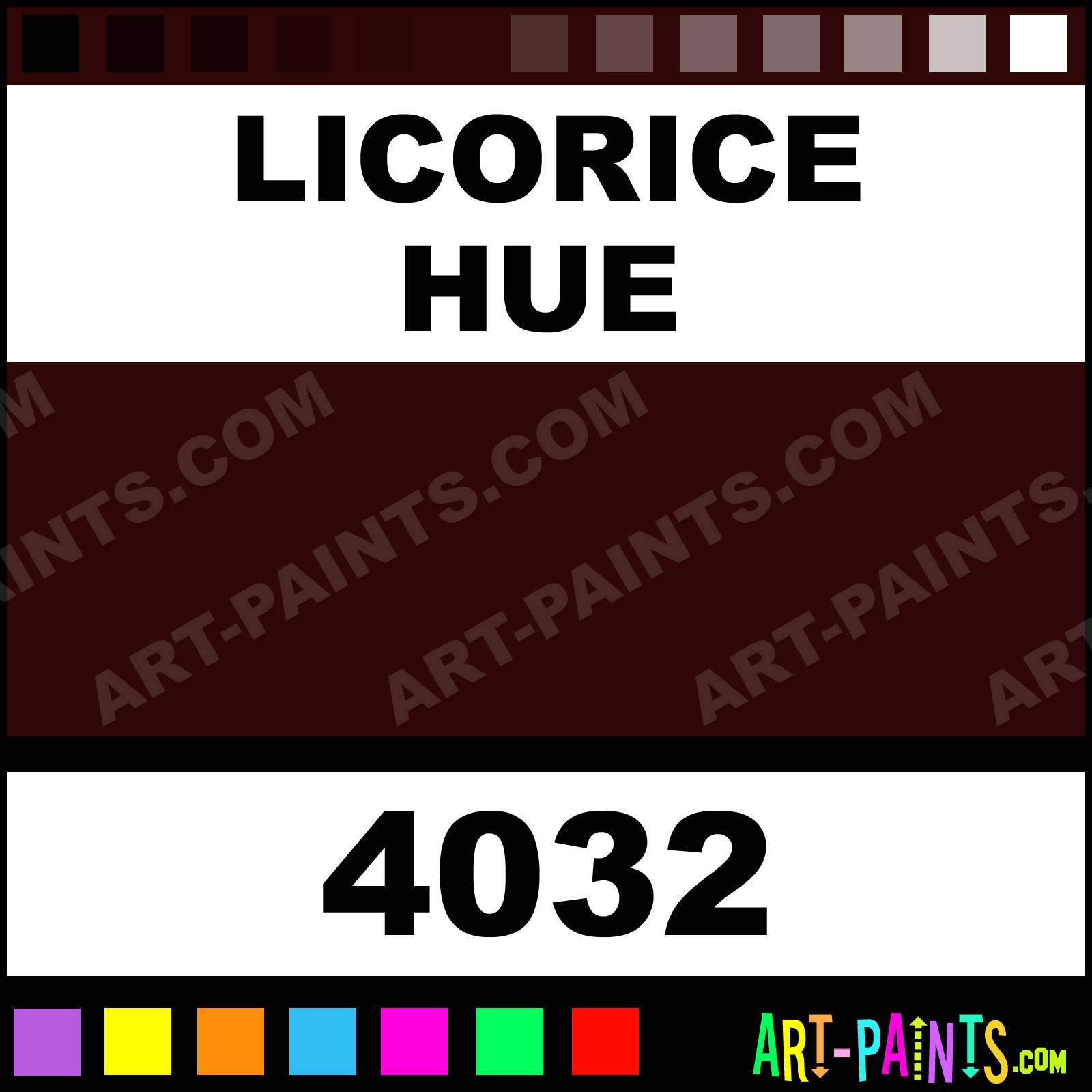 This beautiful Enamels Ceramic shade is called Licorice, and comes from a company called FolkArt. Their product number, along with the HTML color code, RGB, and CMYK codes are listed below. This Beautiful Shade of Licorice and others can be found in the FolkArt Enamels Art Paint Gallery! Also be sure to browse through the other wonderful Professional Color Galleries to see more of FolkArt Enamels Ceramic Porcelain, Pottery, Bisque, Greenware Brand Paints and other Paint Manufacturers. And as always, Paint Paint Paint! -Art-Paints.com