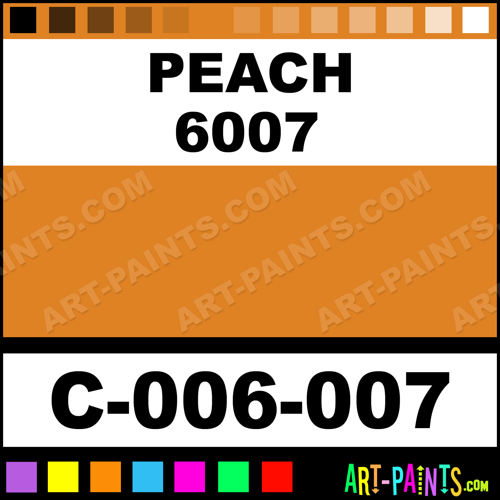 This beautiful Stains Ceramic Porcelain shade is called Peach 6007, and comes from a company called Mason. Their product number, along with the HTML color code, RGB, and CMYK codes are listed below. This Beautiful Shade of Peach 6007 and others can be found in the Mason Stains Art Paint Gallery! Also be sure to browse through the other wonderful Professional Color Galleries to see more of Mason Stains Ceramic Porcelain, Pottery, Greenware, Bisque Brand Paints and other Paint Manufacturers. And as always, Paint Paint Paint! -Art-Paints.com
