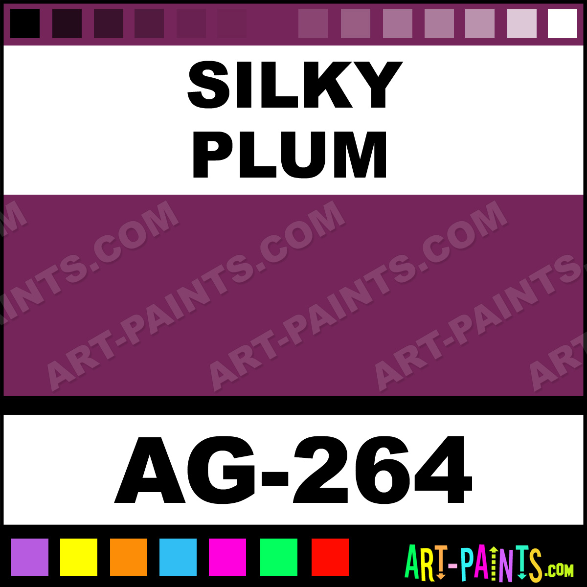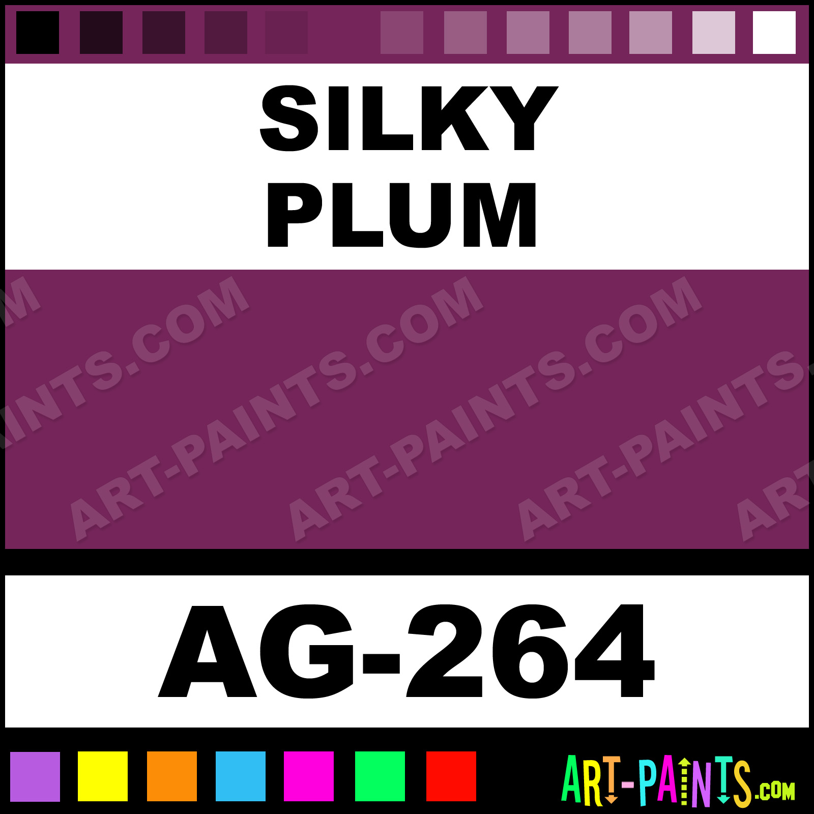 This beautiful Art Glazes Ceramic shade is called Silky Plum, and comes from a company called Mayco. Their product number, along with the HTML color code, RGB, and CMYK codes are listed below. This Beautiful Shade of Silky Plum and others can be found in the Mayco Art Glazes Art Paint Gallery! Also be sure to browse through the other wonderful Professional Color Galleries to see more of Mayco Art Glazes Ceramic Porcelain, Pottery, Bisque, Greenware Brand Paints and other Paint Manufacturers. And as always, Paint Paint Paint! -Art-Paints.com