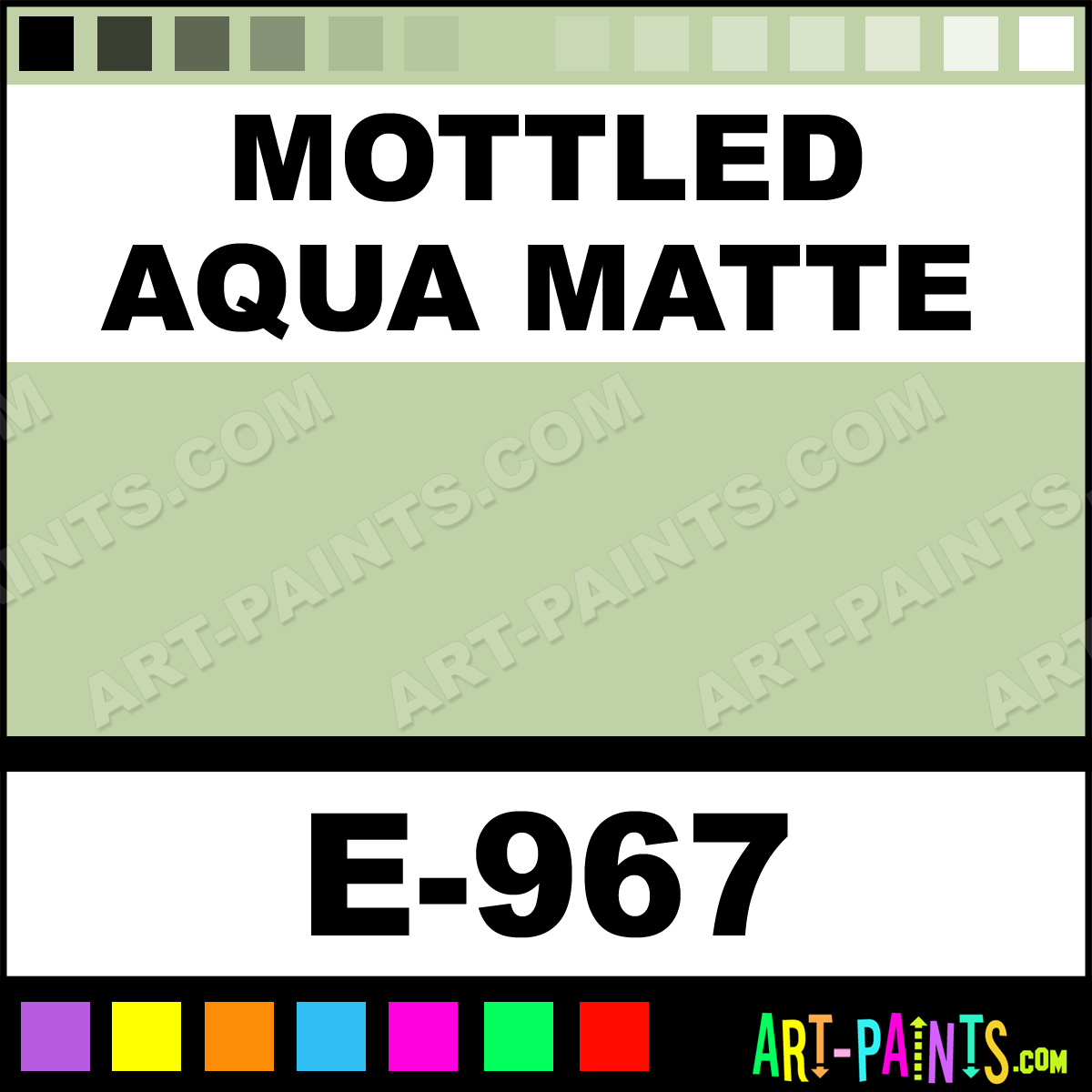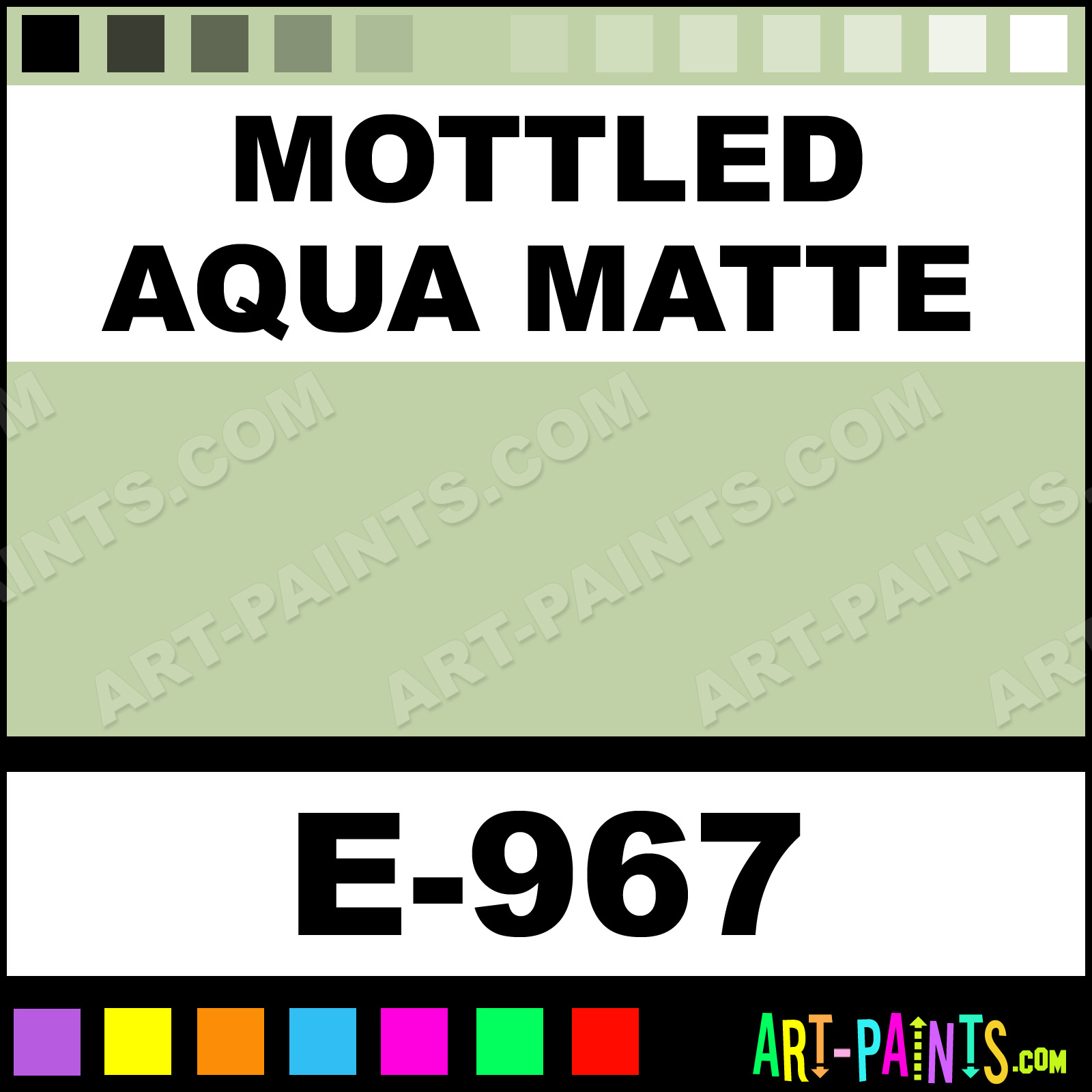 This beautiful Exotic Glaze Ceramic shade is called Mottled Aqua Matte, and comes from a company called Mayco. Their product number, along with the HTML color code, RGB, and CMYK codes are listed below. This Beautiful Shade of Mottled Aqua Matte and others can be found in the Mayco Exotic Glaze Art Paint Gallery! Also be sure to browse through the other wonderful Professional Color Galleries to see more of Mayco Exotic Glaze Ceramic Porcelain, Pottery, Bisque, Greenware Brand Paints and other Paint Manufacturers. And as always, Paint Paint Paint! -Art-Paints.com