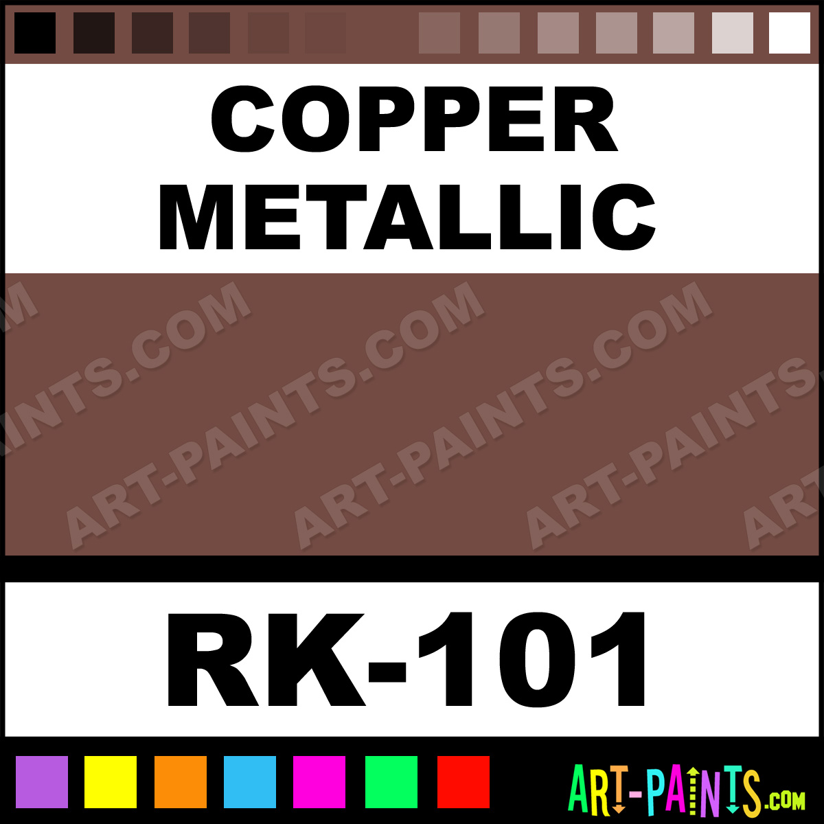 This beautiful Raku Ceramic shade is called Copper Metallic, and comes from a company called Mayco. Their product number, along with the HTML color code, RGB, and CMYK codes are listed below. This Beautiful Shade of Copper Metallic and others can be found in the Mayco Raku Art Paint Gallery! Also be sure to browse through the other wonderful Professional Color Galleries to see more of Mayco Raku Ceramic Porcelain, Pottery, Bisque, Greenware Brand Paints and other Paint Manufacturers. And as always, Paint Paint Paint! -Art-Paints.com