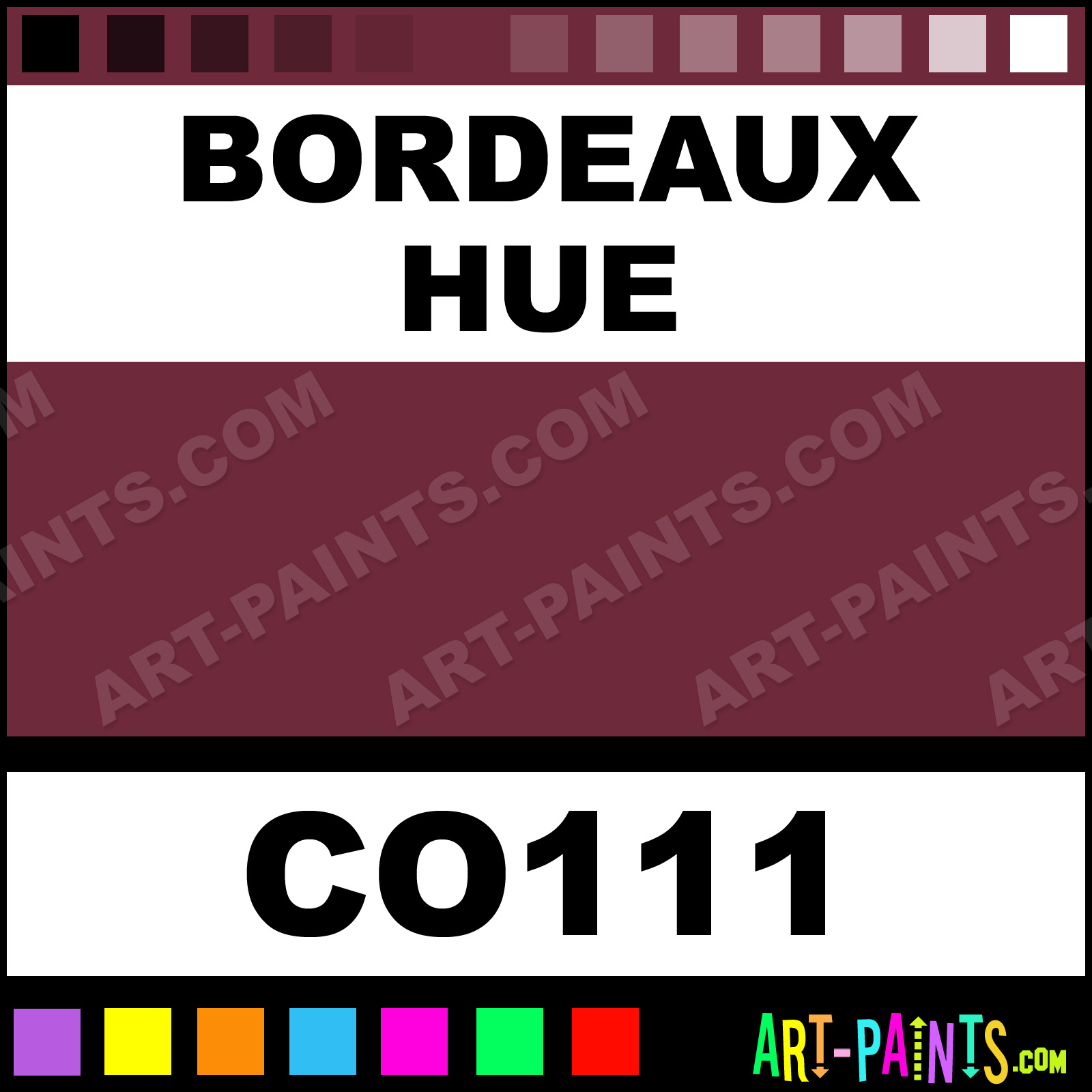 This beautiful Opaque Stain Ceramic shade is called Bordeaux, and comes from a company called Nowell. Their product number, along with the HTML color code, RGB, and CMYK codes are listed below. This Beautiful Shade of Bordeaux and others can be found in the Nowell Opaque Stain Art Paint Gallery! Also be sure to browse through the other wonderful Professional Color Galleries to see more of Nowell Opaque Stain Ceramic Porcelain, Pottery, Bisque, Greenware Brand Paints and other Paint Manufacturers. And as always, Paint Paint Paint! -Art-Paints.com