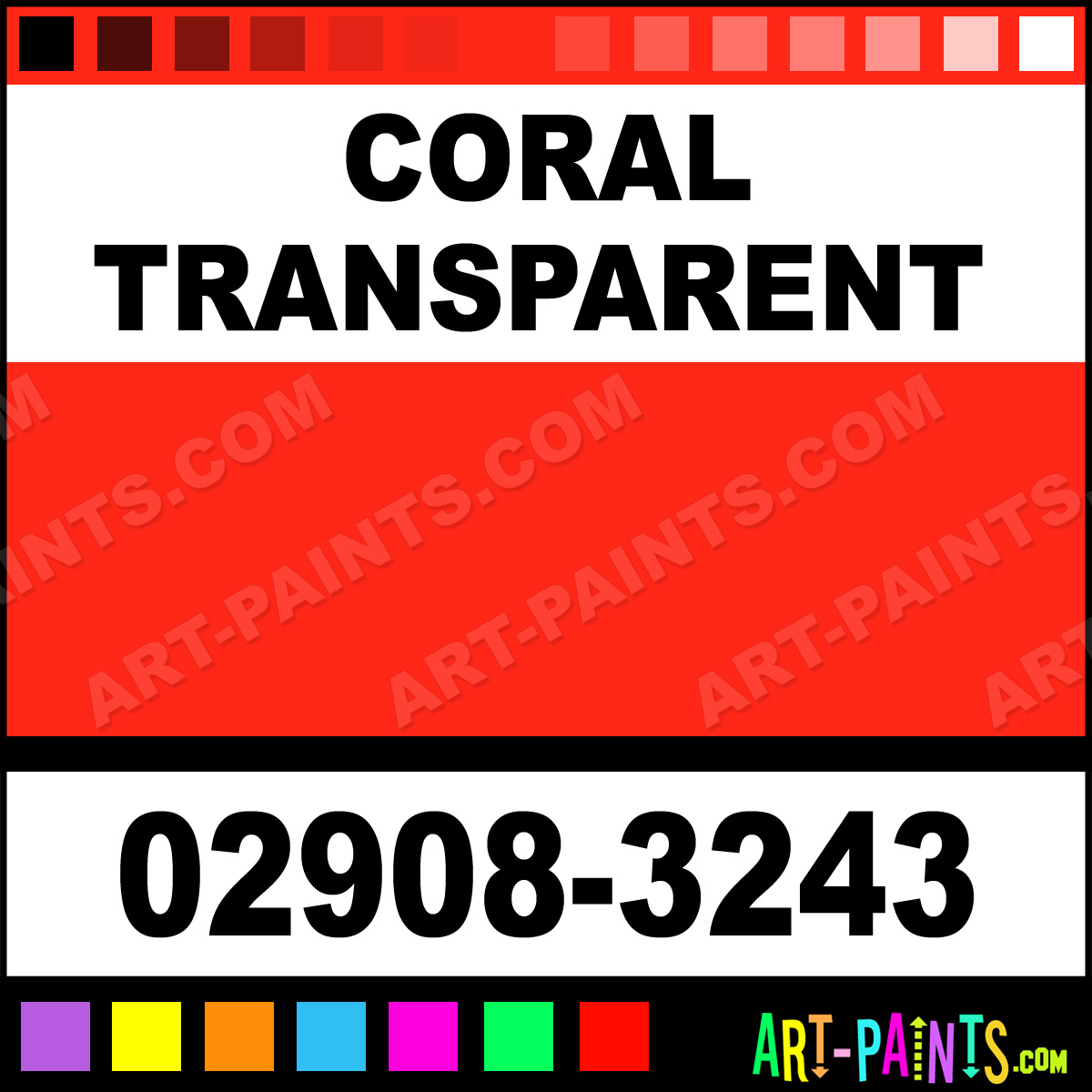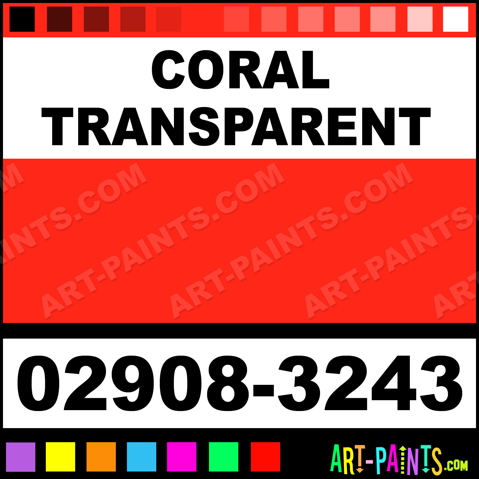 This beautiful Porcelaine 150 Ceramic shade is called Coral Transparent, and comes from a company called Pebeo. Their product number, along with the HTML color code, RGB, and CMYK codes are listed below. This Beautiful Shade of Coral Transparent and others can be found in the Pebeo Porcelaine 150 Art Paint Gallery! Also be sure to browse through the other wonderful Professional Color Galleries to see more of Pebeo Porcelaine 150 Ceramic Porcelain, Pottery, Bisque, Greenware Brand Paints and other Paint Manufacturers. And as always, Paint Paint Paint! -Art-Paints.com