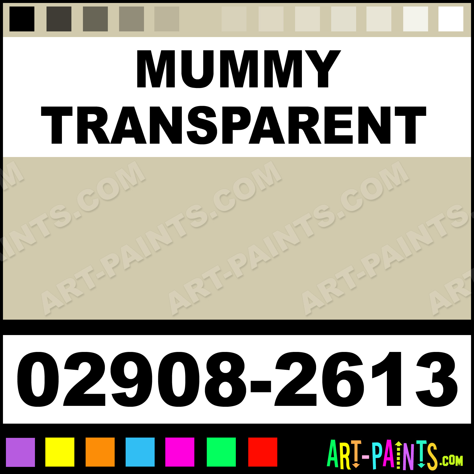 This beautiful Porcelaine 150 Ceramic shade is called Mummy Transparent, and comes from a company called Pebeo. Their product number, along with the HTML color code, RGB, and CMYK codes are listed below. This Beautiful Shade of Mummy Transparent and others can be found in the Pebeo Porcelaine 150 Art Paint Gallery! Also be sure to browse through the other wonderful Professional Color Galleries to see more of Pebeo Porcelaine 150 Ceramic Porcelain, Pottery, Bisque, Greenware Brand Paints and other Paint Manufacturers. And as always, Paint Paint Paint! -Art-Paints.com