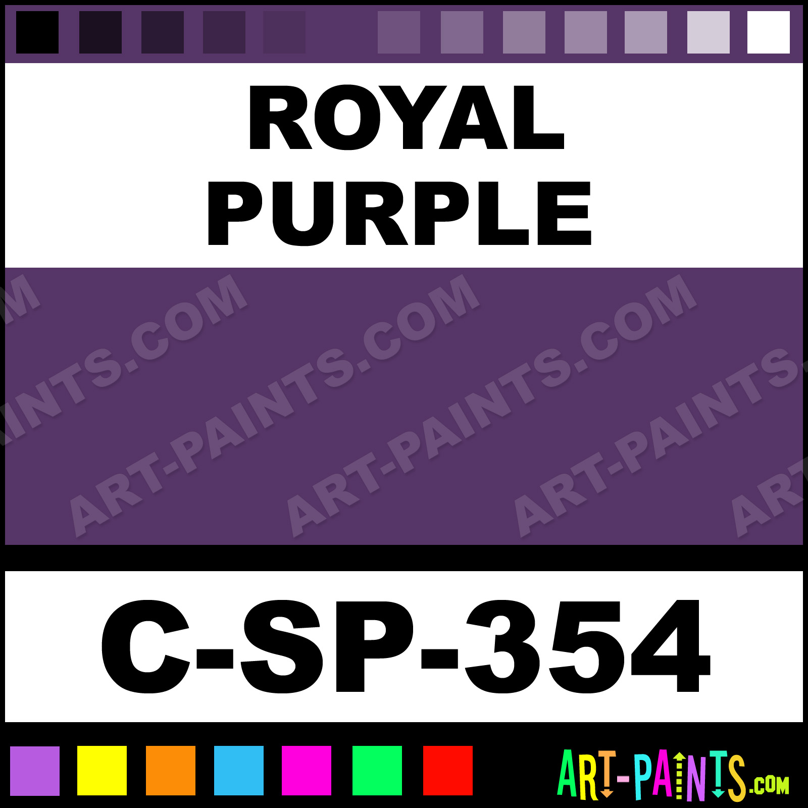 This beautiful 300 Series Ultraglaze Ceramic shade is called Royal Purple, and comes from a company called Spectrum. Their product number, along with the HTML color code, RGB, and CMYK codes are listed below. This Beautiful Shade of Royal Purple and others can be found in the Spectrum 300 Series Ultraglaze Art Paint Gallery! Also be sure to browse through the other wonderful Professional Color Galleries to see more of Spectrum 300 Series Ultraglaze Ceramic Porcelain, Pottery, Bisque, Greenware Brand Paints and other Paint Manufacturers. And as always, Paint Paint Paint! -Art-Paints.com