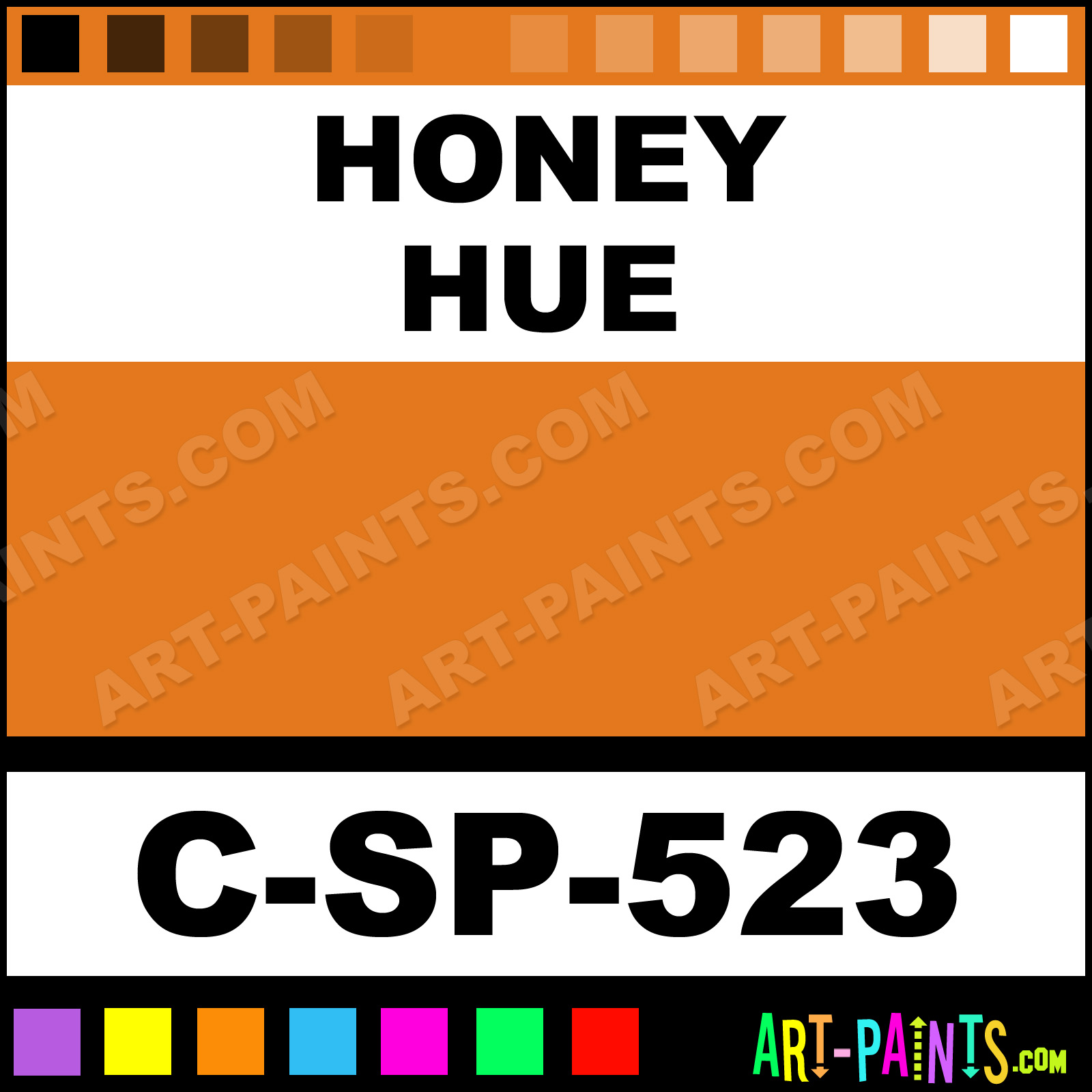This beautiful 500 Series Underglaze Ceramic shade is called Honey, and comes from a company called Spectrum. Their product number, along with the HTML color code, RGB, and CMYK codes are listed below. This Beautiful Shade of Honey and others can be found in the Spectrum 500 Series Underglaze Art Paint Gallery! Also be sure to browse through the other wonderful Professional Color Galleries to see more of Spectrum 500 Series Underglaze Ceramic Porcelain, Pottery, Bisque, Greenware Brand Paints and other Paint Manufacturers. And as always, Paint Paint Paint! -Art-Paints.com