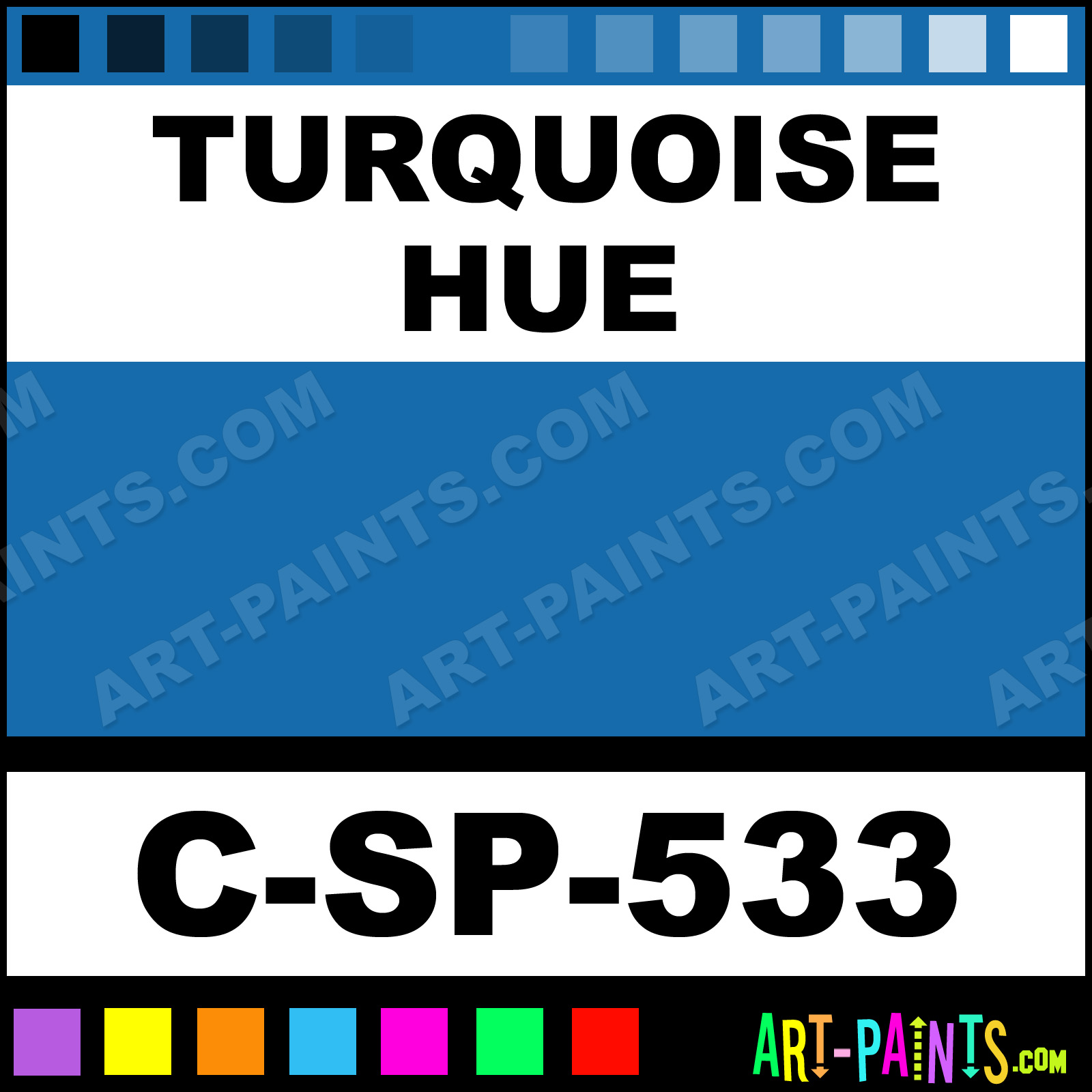 This beautiful 500 Series Underglaze Ceramic shade is called Turquoise, and comes from a company called Spectrum. Their product number, along with the HTML color code, RGB, and CMYK codes are listed below. This Beautiful Shade of Turquoise and others can be found in the Spectrum 500 Series Underglaze Art Paint Gallery! Also be sure to browse through the other wonderful Professional Color Galleries to see more of Spectrum 500 Series Underglaze Ceramic Porcelain, Pottery, Bisque, Greenware Brand Paints and other Paint Manufacturers. And as always, Paint Paint Paint! -Art-Paints.com