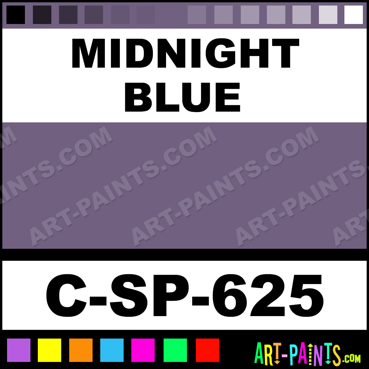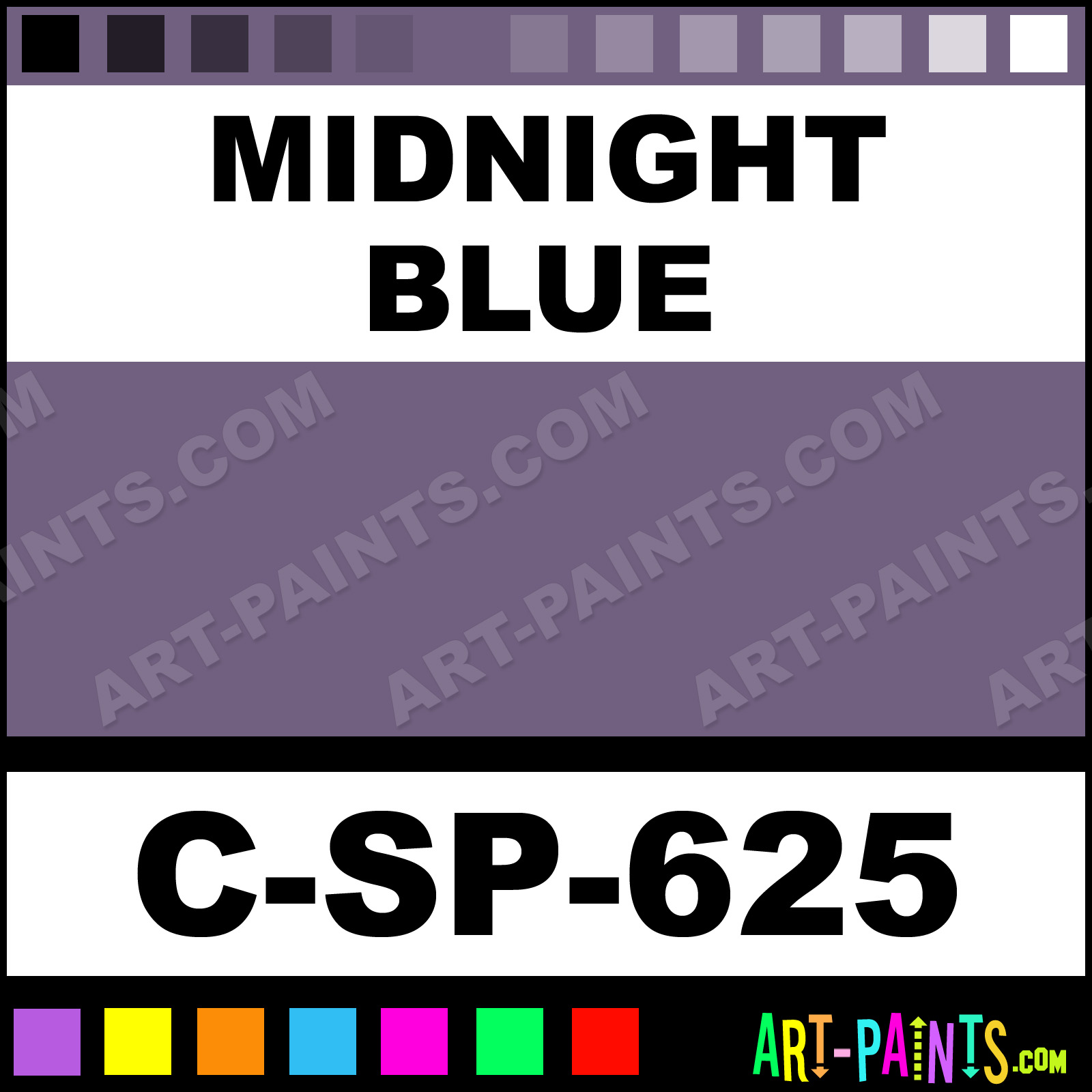 This beautiful 600 Series Underglaze Ceramic shade is called Midnight Blue, and comes from a company called Spectrum. Their product number, along with the HTML color code, RGB, and CMYK codes are listed below. This Beautiful Shade of Midnight Blue and others can be found in the Spectrum 600 Series Underglaze Art Paint Gallery! Also be sure to browse through the other wonderful Professional Color Galleries to see more of Spectrum 600 Series Underglaze Ceramic Porcelain, Pottery, Bisque, Greenware Brand Paints and other Paint Manufacturers. And as always, Paint Paint Paint! -Art-Paints.com