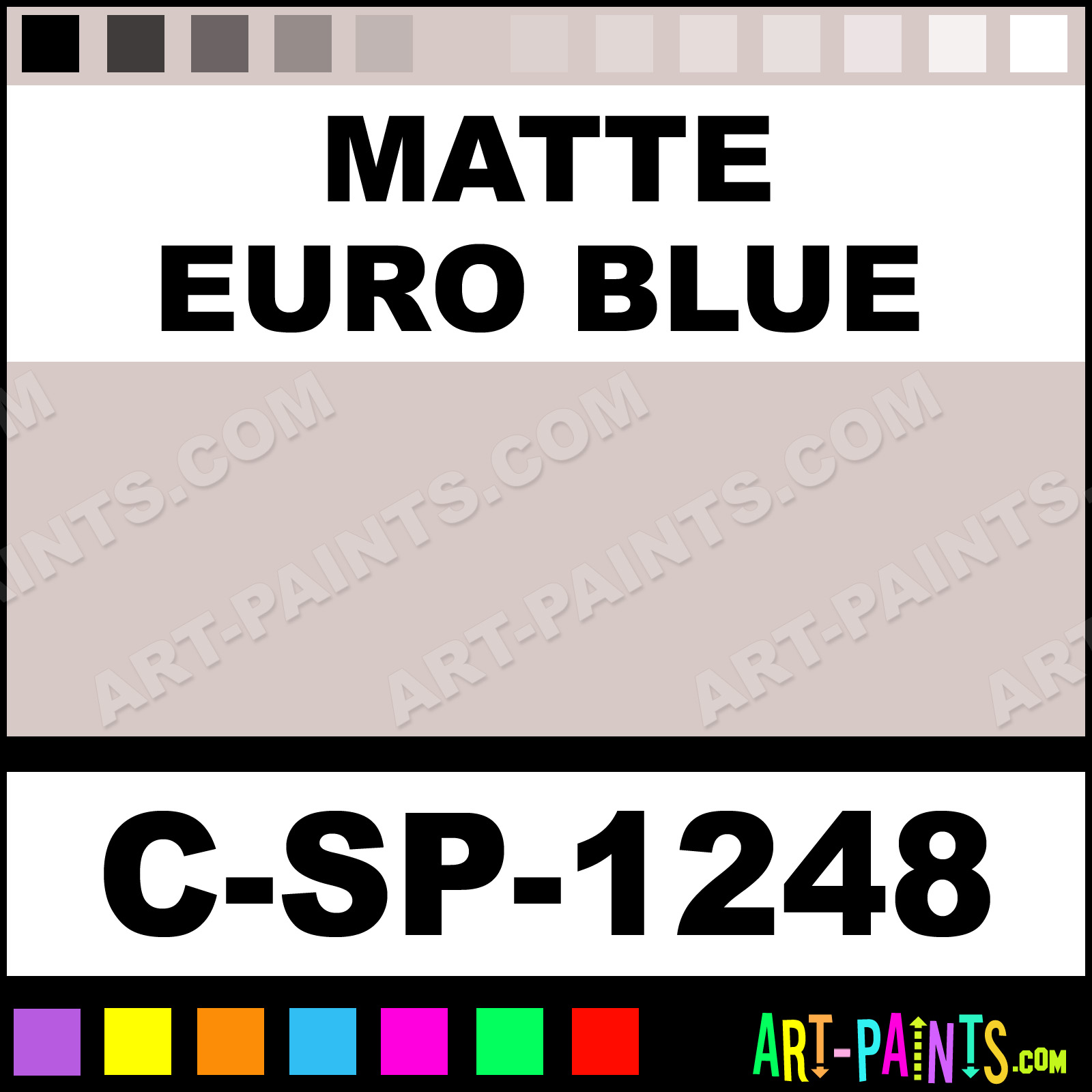 This beautiful Hi-Fire 1200 Series Ceramic shade is called Matte Euro Blue, and comes from a company called Spectrum. Their product number, along with the HTML color code, RGB, and CMYK codes are listed below. This Beautiful Shade of Matte Euro Blue and others can be found in the Spectrum Hi-Fire 1200 Series Art Paint Gallery! Also be sure to browse through the other wonderful Professional Color Galleries to see more of Spectrum Hi-Fire 1200 Series Ceramic Porcelain, Pottery, Bisque, Greenware Brand Paints and other Paint Manufacturers. And as always, Paint Paint Paint! -Art-Paints.com