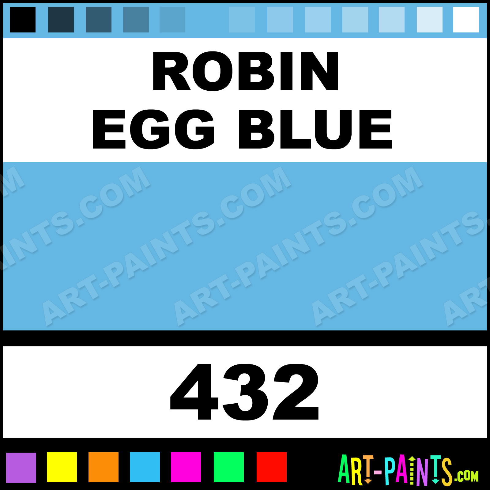 This beautiful SuperWriters Ceramic shade is called Robin Egg Blue, and comes from a company called Spectrum. Their product number, along with the HTML color code, RGB, and CMYK codes are listed below. This Beautiful Shade of Robin Egg Blue and others can be found in the Spectrum SuperWriters Art Paint Gallery! Also be sure to browse through the other wonderful Professional Color Galleries to see more of Spectrum SuperWriters Ceramic Porcelain, Pottery, Bisque, Greenware Brand Paints and other Paint Manufacturers. And as always, Paint Paint Paint! -Art-Paints.com