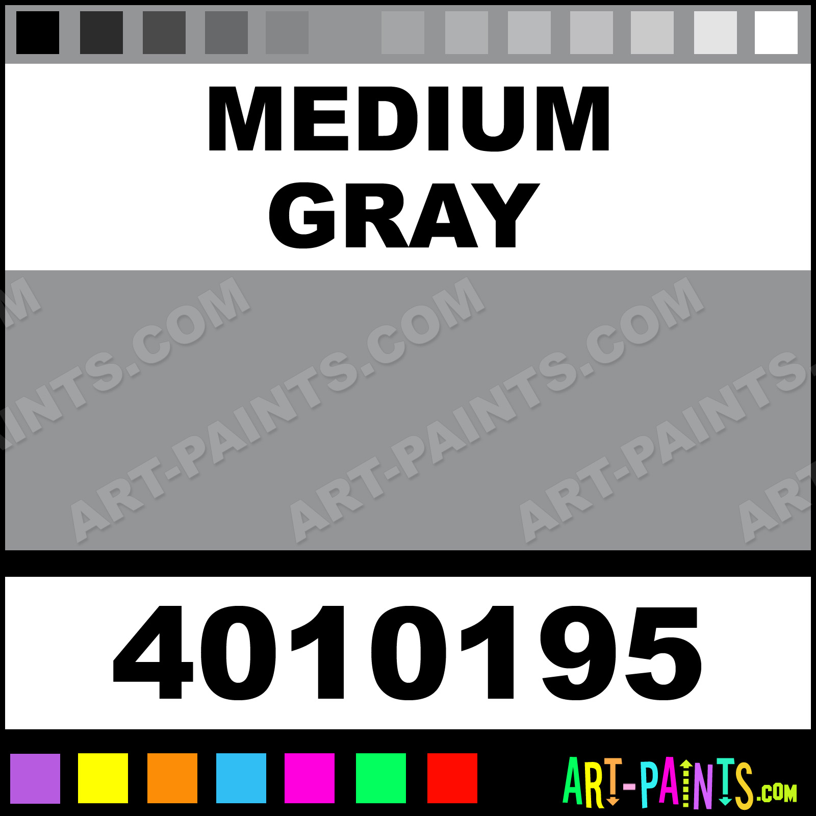 This beautiful Bulletin Enamel shade is called Medium Gray, and comes from a company called Chromatic. Their product number, along with the HTML color code, RGB, and CMYK codes are listed below. This Beautiful Shade of Medium Gray and others can be found in the Chromatic Bulletin Art Paint Gallery! Also be sure to browse through the other wonderful Professional Color Galleries to see more of Chromatic Bulletin Enamel Brand Paints and other Paint Manufacturers. And as always, Paint Paint Paint! -Art-Paints.com