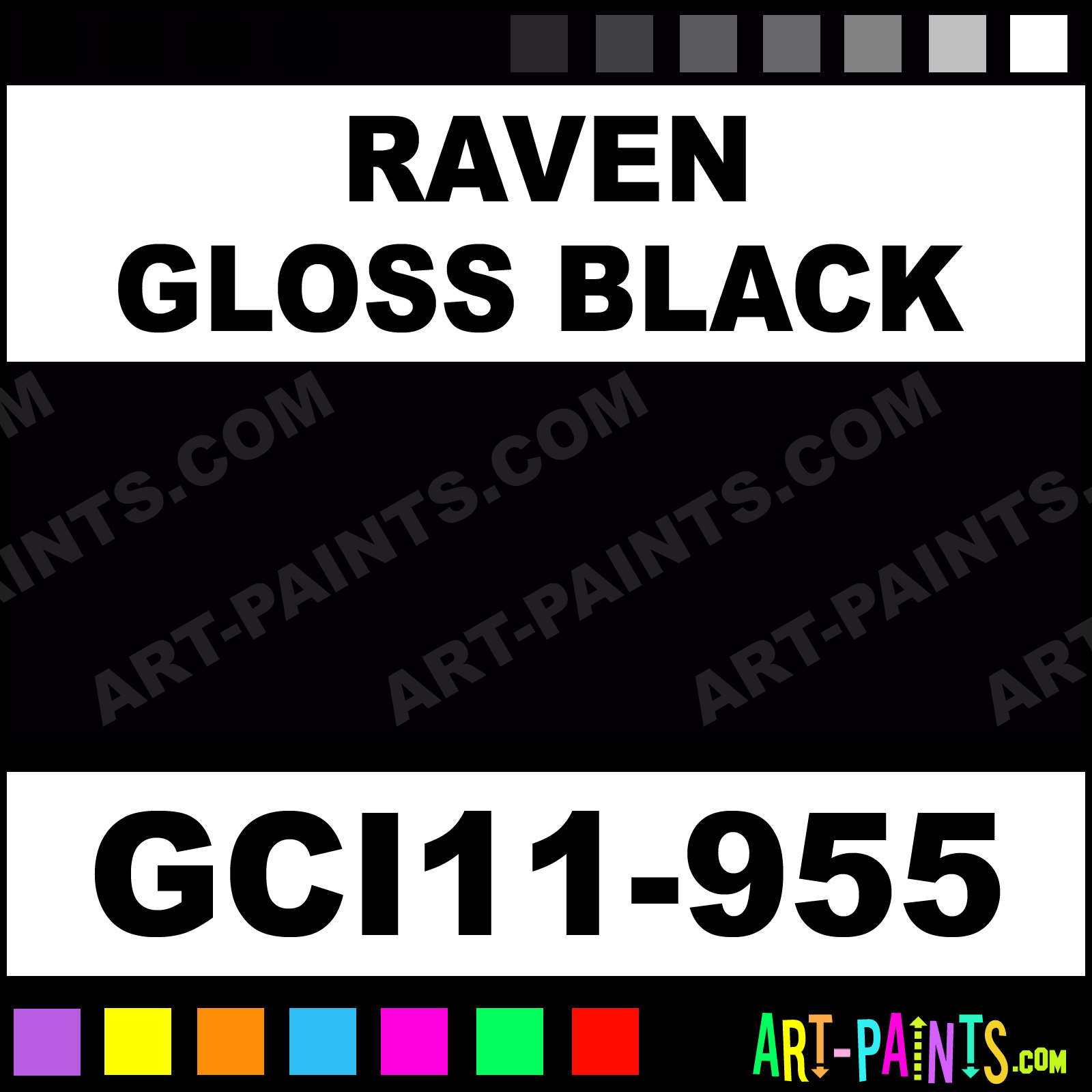 This beautiful Industrial Enamel shade is called Raven Gloss Black, and comes from a company called GCI Alkyd. Their product number, along with the HTML color code, RGB, and CMYK codes are listed below. This Beautiful Shade of Raven Gloss Black and others can be found in the GCI Alkyd Industrial Art Paint Gallery! Also be sure to browse through the other wonderful Professional Color Galleries to see more of GCI Alkyd Industrial Enamel Brand Paints and other Paint Manufacturers. And as always, Paint Paint Paint! -Art-Paints.com