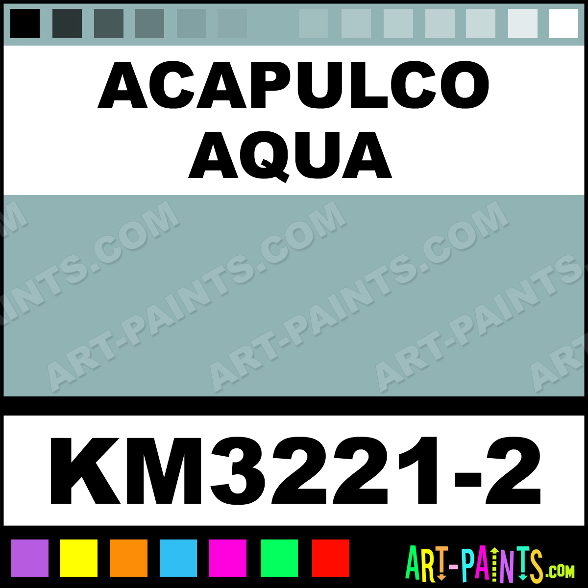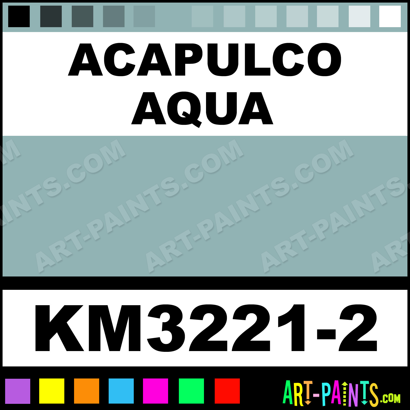 This beautiful Interior Enamel shade is called Acapulco Aqua, and comes from a company called Kelly Moore. Their product number, along with the HTML color code, RGB, and CMYK codes are listed below. This Beautiful Shade of Acapulco Aqua and others can be found in the Kelly Moore Interior Art Paint Gallery! Also be sure to browse through the other wonderful Professional Color Galleries to see more of Kelly Moore Interior Enamel Brand Paints and other Paint Manufacturers. And as always, Paint Paint Paint! -Art-Paints.com