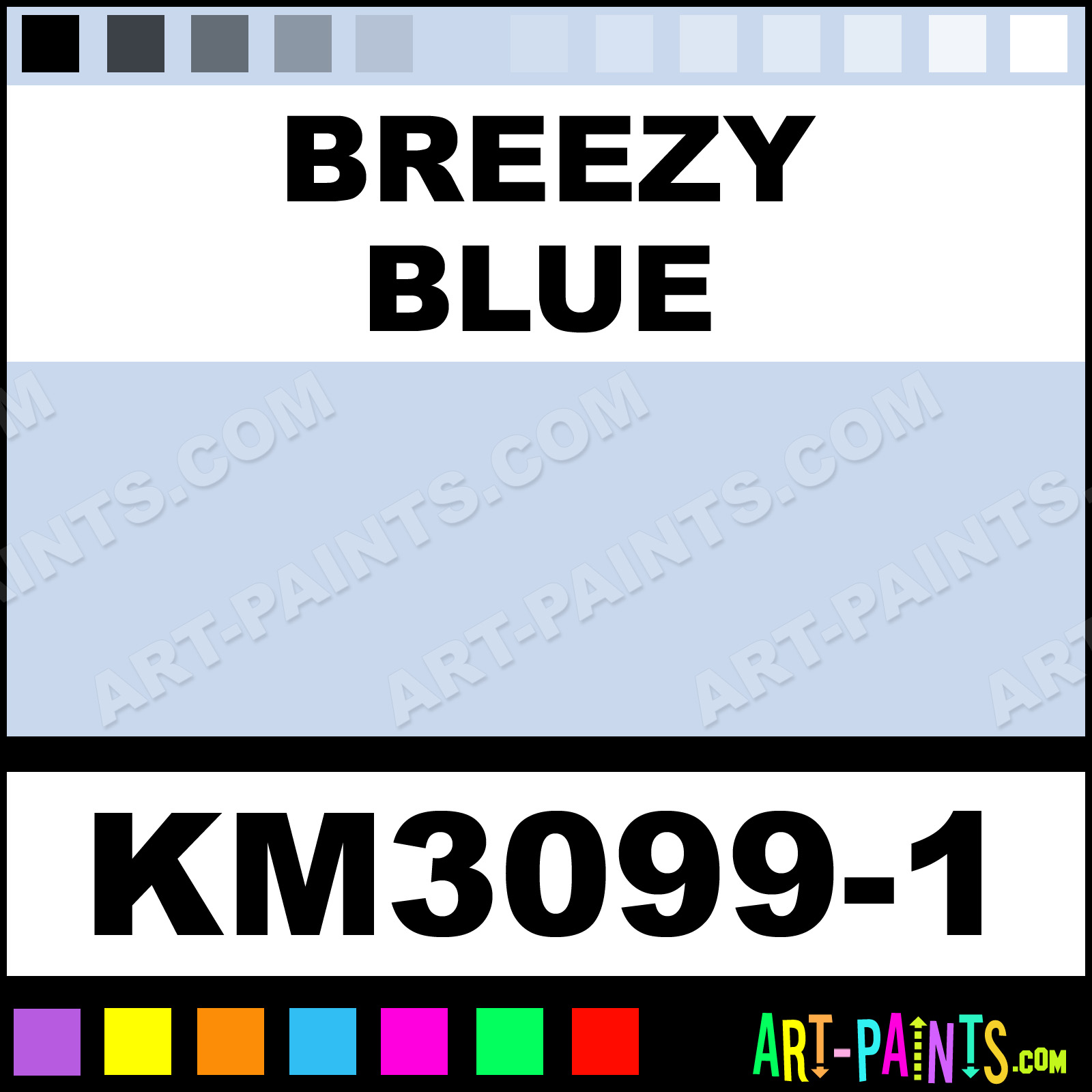 This beautiful Interior Enamel shade is called Breezy Blue, and comes from a company called Kelly Moore. Their product number, along with the HTML color code, RGB, and CMYK codes are listed below. This Beautiful Shade of Breezy Blue and others can be found in the Kelly Moore Interior Art Paint Gallery! Also be sure to browse through the other wonderful Professional Color Galleries to see more of Kelly Moore Interior Enamel Brand Paints and other Paint Manufacturers. And as always, Paint Paint Paint! -Art-Paints.com