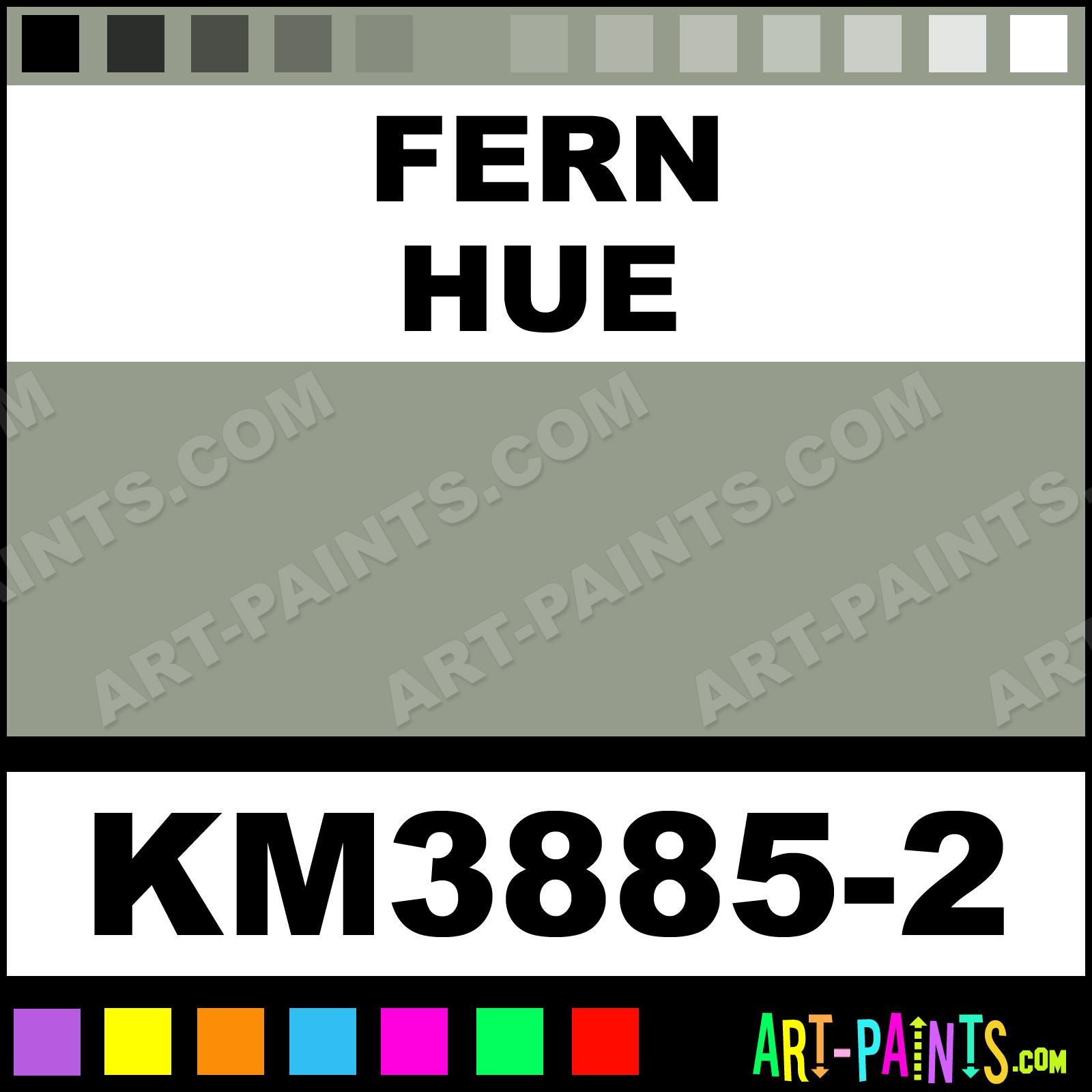This beautiful Interior Enamel shade is called Fern, and comes from a company called Kelly Moore. Their product number, along with the HTML color code, RGB, and CMYK codes are listed below. This Beautiful Shade of Fern and others can be found in the Kelly Moore Interior Art Paint Gallery! Also be sure to browse through the other wonderful Professional Color Galleries to see more of Kelly Moore Interior Enamel Brand Paints and other Paint Manufacturers. And as always, Paint Paint Paint! -Art-Paints.com