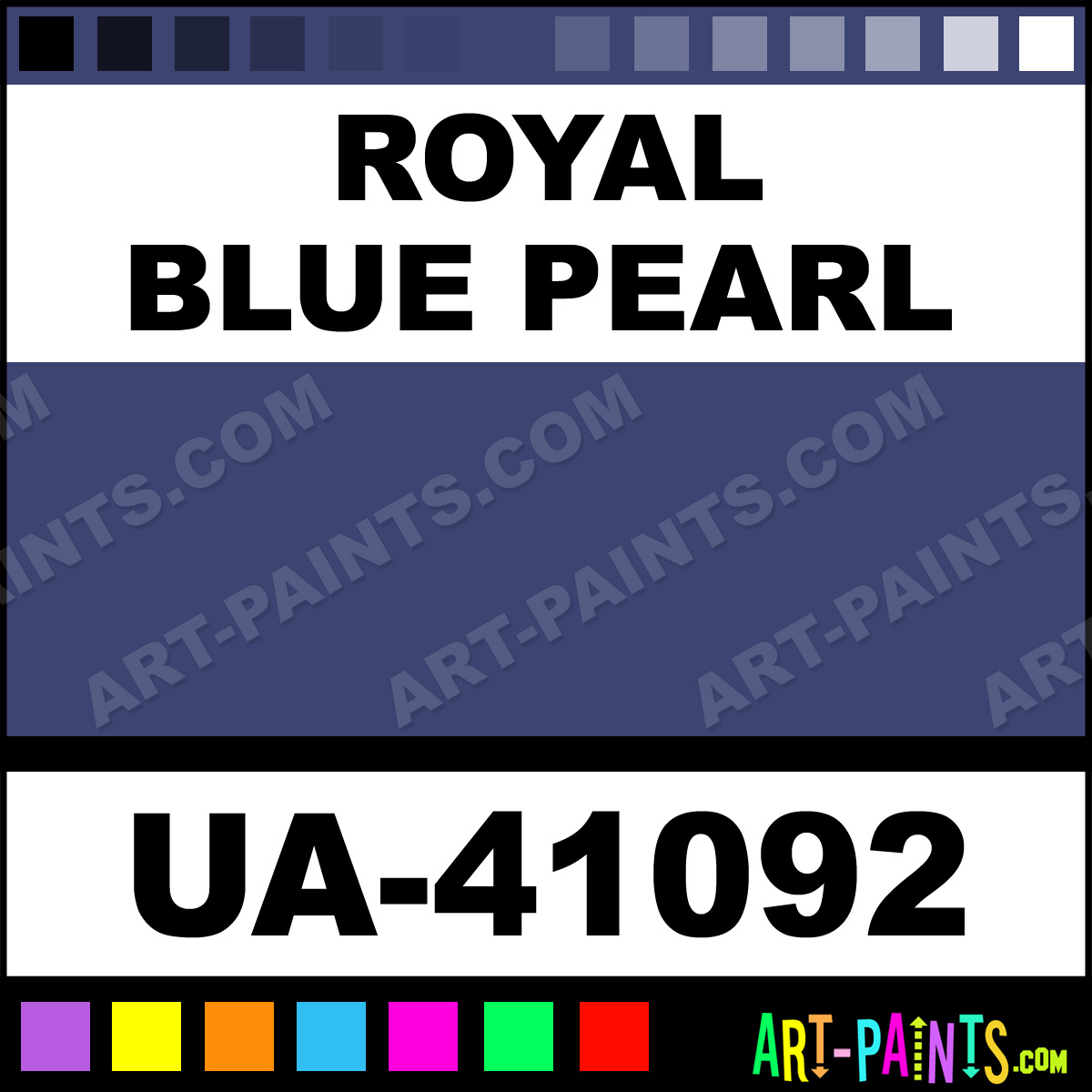 This beautiful Ultra-Glo Enamel shade is called Royal Blue Pearl, and comes from a company called Kirker. Their product number, along with the HTML color code, RGB, and CMYK codes are listed below. This Beautiful Shade of Royal Blue Pearl and others can be found in the Kirker Ultra-Glo Art Paint Gallery! Also be sure to browse through the other wonderful Professional Color Galleries to see more of Kirker Ultra-Glo Enamel Brand Paints and other Paint Manufacturers. And as always, Paint Paint Paint! -Art-Paints.com