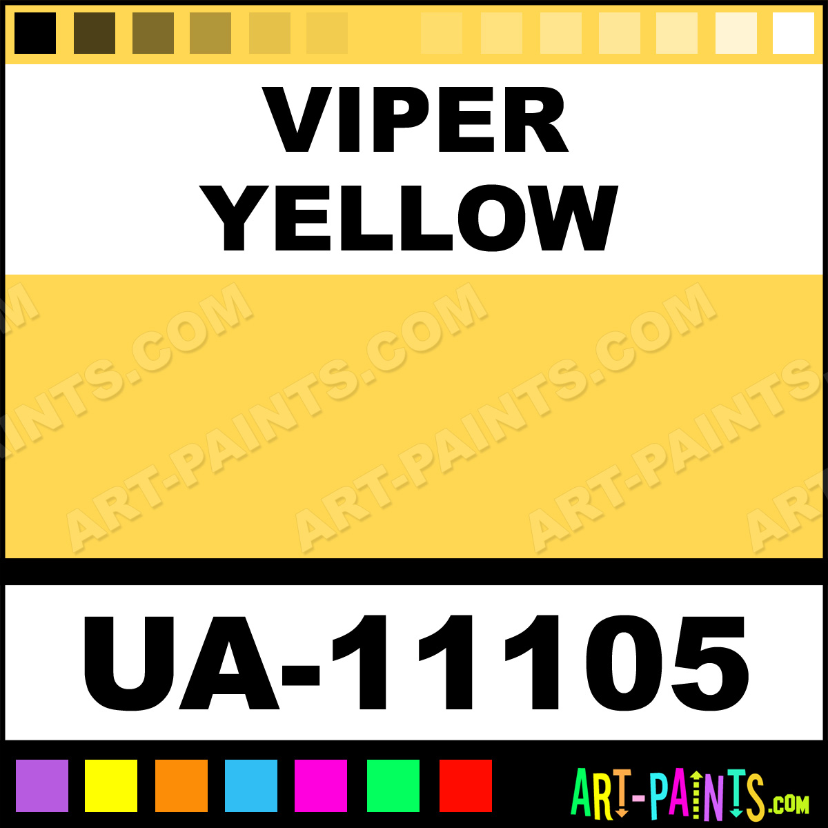 This beautiful Ultra-Glo Enamel shade is called Viper Yellow, and comes from a company called Kirker. Their product number, along with the HTML color code, RGB, and CMYK codes are listed below. This Beautiful Shade of Viper Yellow and others can be found in the Kirker Ultra-Glo Art Paint Gallery! Also be sure to browse through the other wonderful Professional Color Galleries to see more of Kirker Ultra-Glo Enamel Brand Paints and other Paint Manufacturers. And as always, Paint Paint Paint! -Art-Paints.com