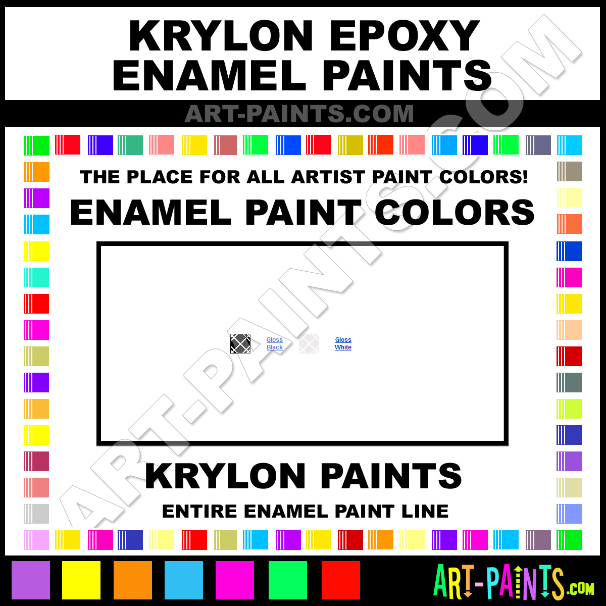 Krylon knows Enamel paints! They make a wonderful brand of paint called Krylon Epoxy Enamel Colors that suits all types of artists. They strive to perfect the process of color and are one of the most popular Enamel Paint Brand companies in the world. Enjoy their entire paint brand collection from the list below. Krylon makes wonderful Artists Paints that everyone is sure to enjoy! Choose an Enamel Paint Color below to view that Hue and all their great related color paints. Paint on!     -Art-Paints.com