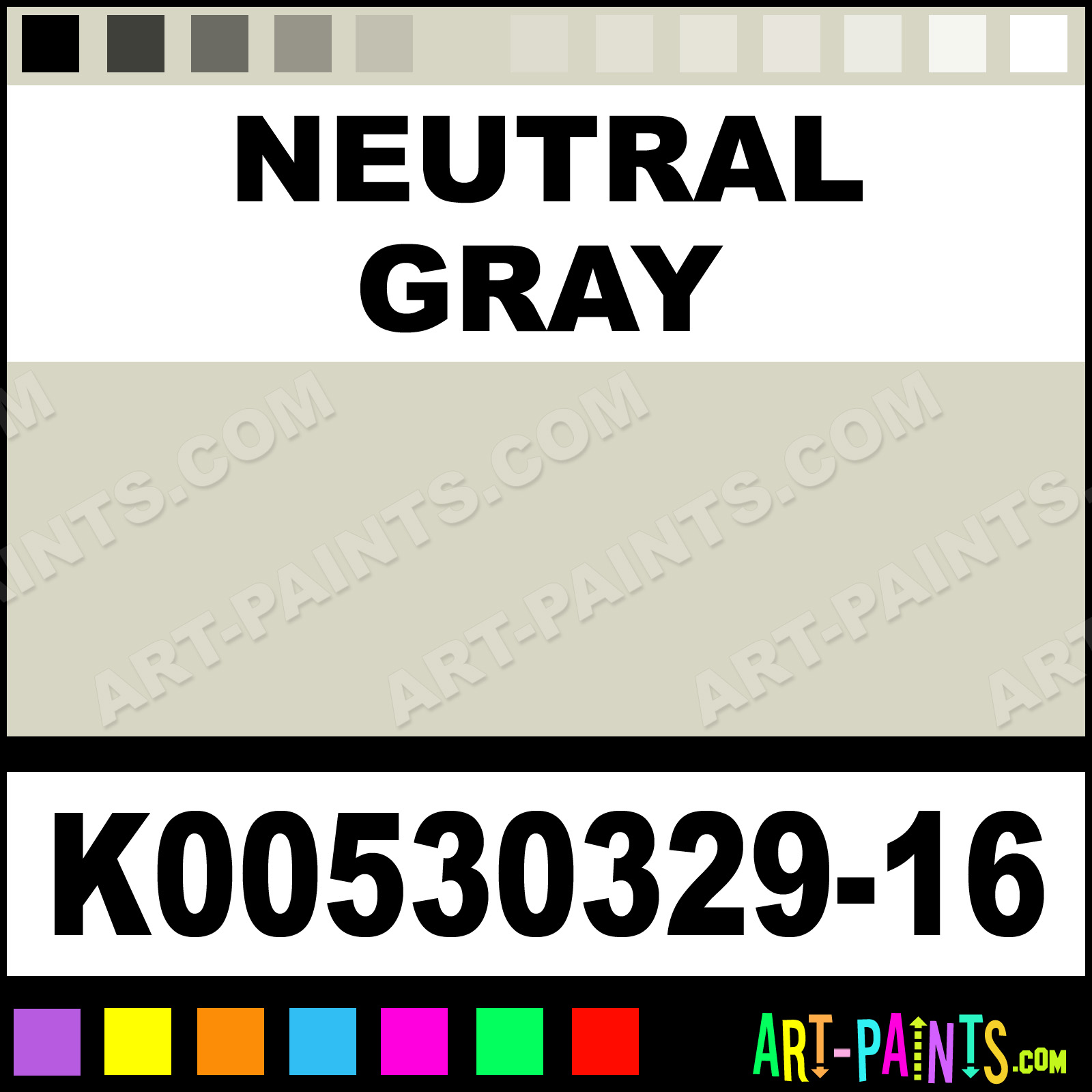 This beautiful Industrial Alkyd Enamel shade is called Neutral Gray, and comes from a company called Krylon. Their product number, along with the HTML color code, RGB, and CMYK codes are listed below. This Beautiful Shade of Neutral Gray and others can be found in the Krylon Industrial Alkyd Art Paint Gallery! Also be sure to browse through the other wonderful Professional Color Galleries to see more of Krylon Industrial Alkyd Enamel Brand Paints and other Paint Manufacturers. And as always, Paint Paint Paint! -Art-Paints.com