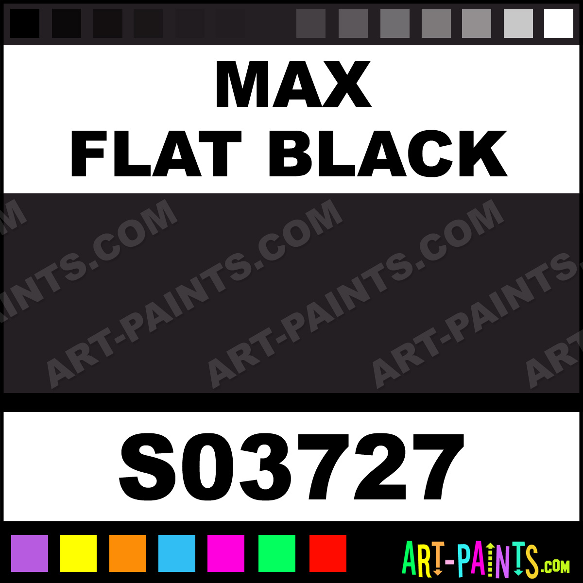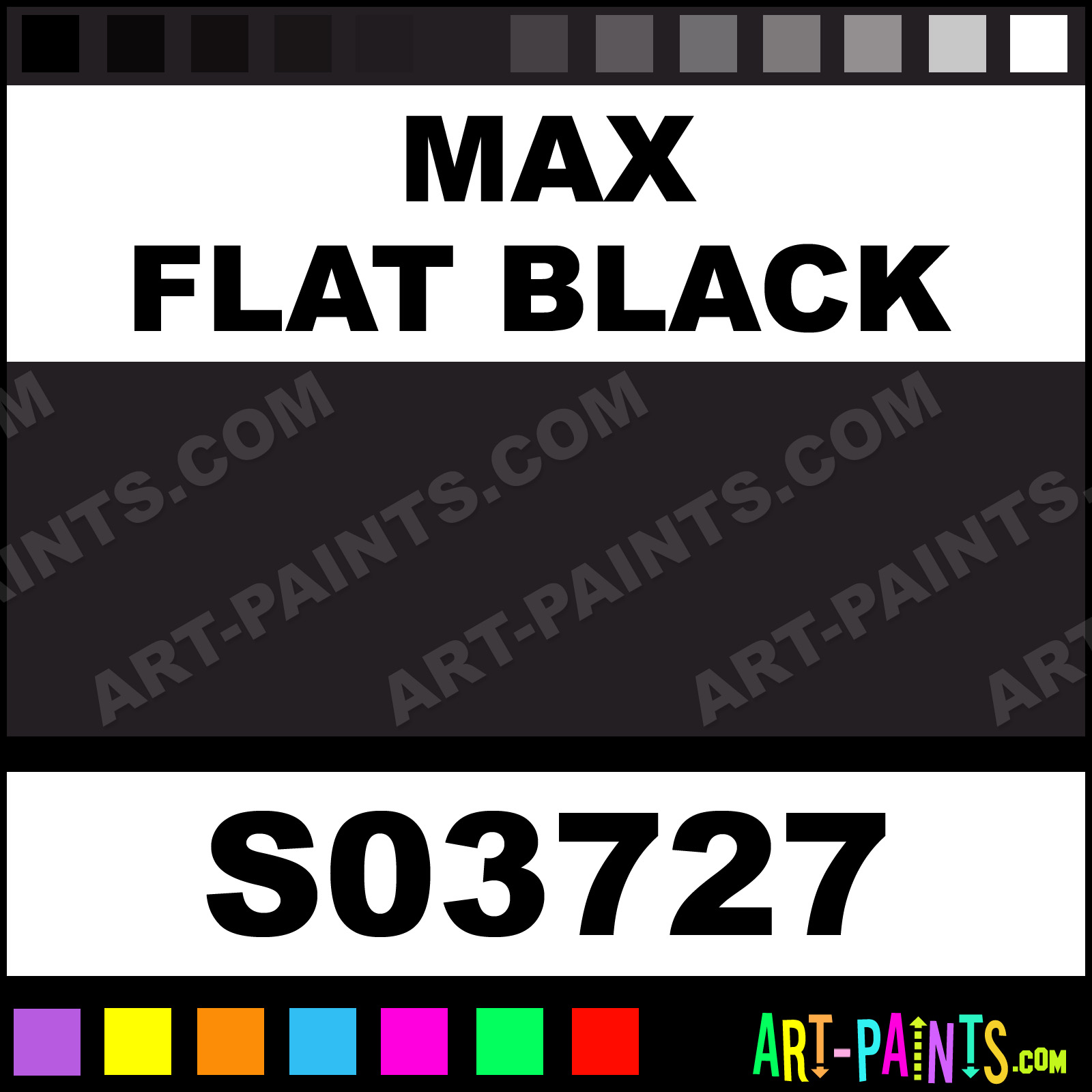 This beautiful Industrial Tough Coat Enamel shade is called Max Flat Black, and comes from a company called Krylon. Their product number, along with the HTML color code, RGB, and CMYK codes are listed below. This Beautiful Shade of Max Flat Black and others can be found in the Krylon Industrial Tough Coat Art Paint Gallery! Also be sure to browse through the other wonderful Professional Color Galleries to see more of Krylon Industrial Tough Coat Enamel Brand Paints and other Paint Manufacturers. And as always, Paint Paint Paint! -Art-Paints.com