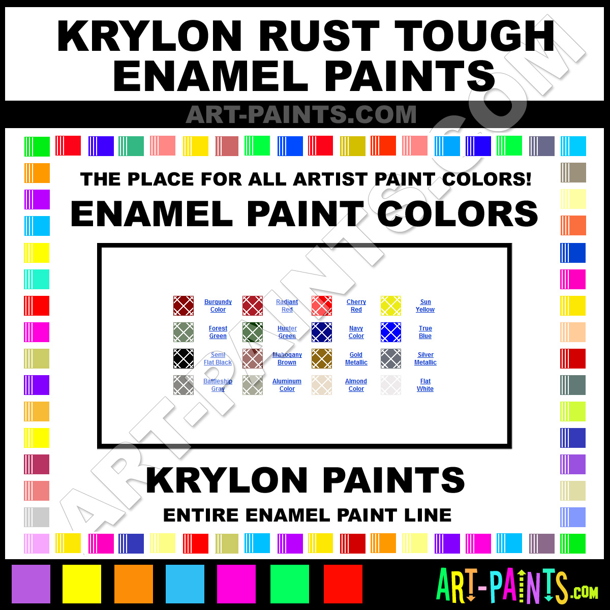 Krylon knows Enamel paints! They make a wonderful brand of paint called Krylon Rust Tough Enamel Colors that suits all types of artists. They strive to perfect the process of color and are one of the most popular Enamel Paint Brand companies in the world. Enjoy their entire paint brand collection from the list below. Krylon makes wonderful Artists Paints that everyone is sure to enjoy! Choose an Enamel Paint Color below to view that Hue and all their great related color paints. Paint on!     -Art-Paints.com