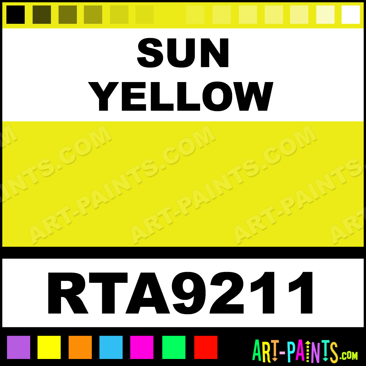 This beautiful Rust Tough Enamel shade is called Sun Yellow, and comes from a company called Krylon. Their product number, along with the HTML color code, RGB, and CMYK codes are listed below. This Beautiful Shade of Sun Yellow and others can be found in the Krylon Rust Tough Art Paint Gallery! Also be sure to browse through the other wonderful Professional Color Galleries to see more of Krylon Rust Tough Enamel Brand Paints and other Paint Manufacturers. And as always, Paint Paint Paint! -Art-Paints.com