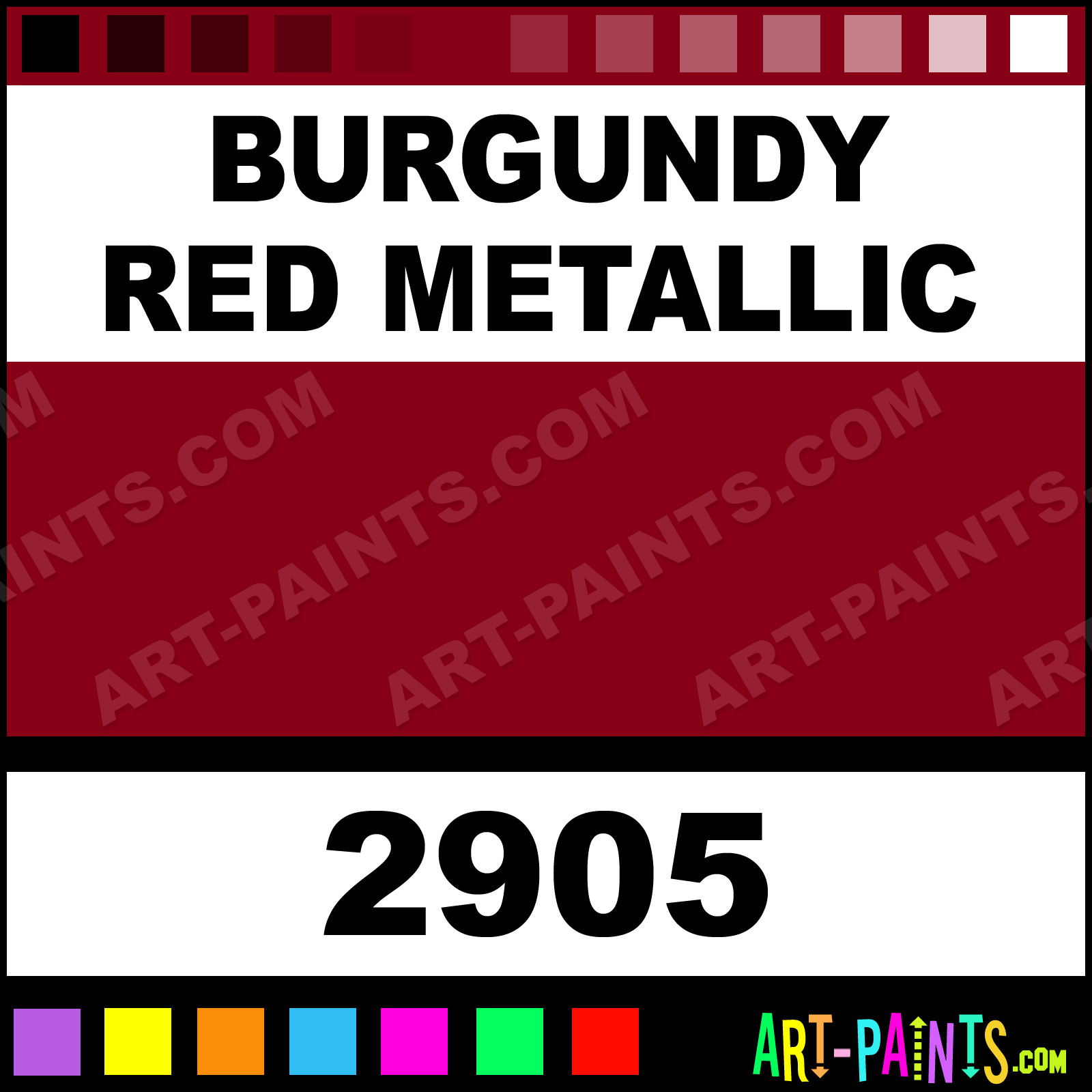 This beautiful Car and Truck Enamel shade is called Burgundy Red Metallic, and comes from a company called Model Master. Their product number, along with the HTML color code, RGB, and CMYK codes are listed below. This Beautiful Shade of Burgundy Red Metallic and others can be found in the Model Master Car and Truck Art Paint Gallery! Also be sure to browse through the other wonderful Professional Color Galleries to see more of Model Master Car and Truck Enamel Brand Paints and other Paint Manufacturers. And as always, Paint Paint Paint! -Art-Paints.com