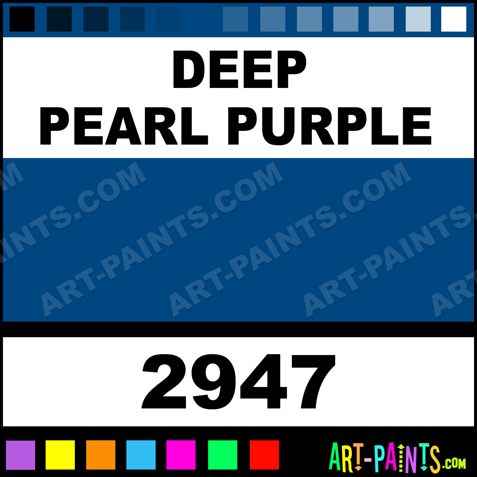 This beautiful Car and Truck Enamel shade is called Deep Pearl Purple, and comes from a company called Model Master. Their product number, along with the HTML color code, RGB, and CMYK codes are listed below. This Beautiful Shade of Deep Pearl Purple and others can be found in the Model Master Car and Truck Art Paint Gallery! Also be sure to browse through the other wonderful Professional Color Galleries to see more of Model Master Car and Truck Enamel Brand Paints and other Paint Manufacturers. And as always, Paint Paint Paint! -Art-Paints.com