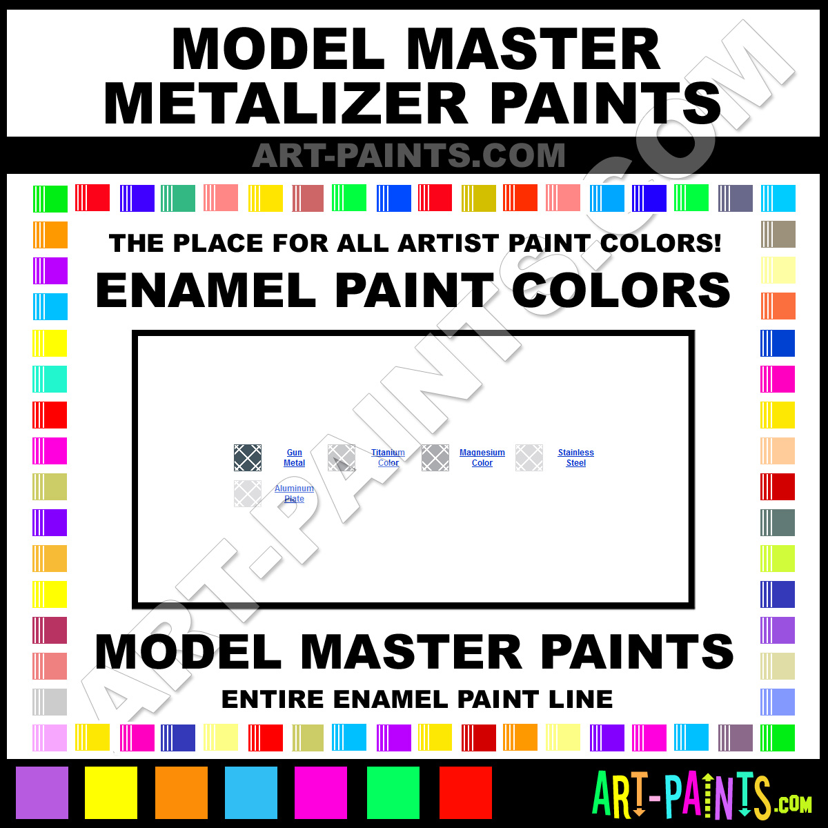 Model Master knows Enamel paints! They make a wonderful brand of paint called Model Master Metalizer Enamel Colors that suits all types of artists. They strive to perfect the process of color and are one of the most popular Enamel Paint Brand companies in the world. Enjoy their entire paint brand collection from the list below. Model Master makes wonderful Artists Paints that everyone is sure to enjoy! Choose an Enamel Paint Color below to view that Hue and all their great related color paints. Paint on!     -Art-Paints.com