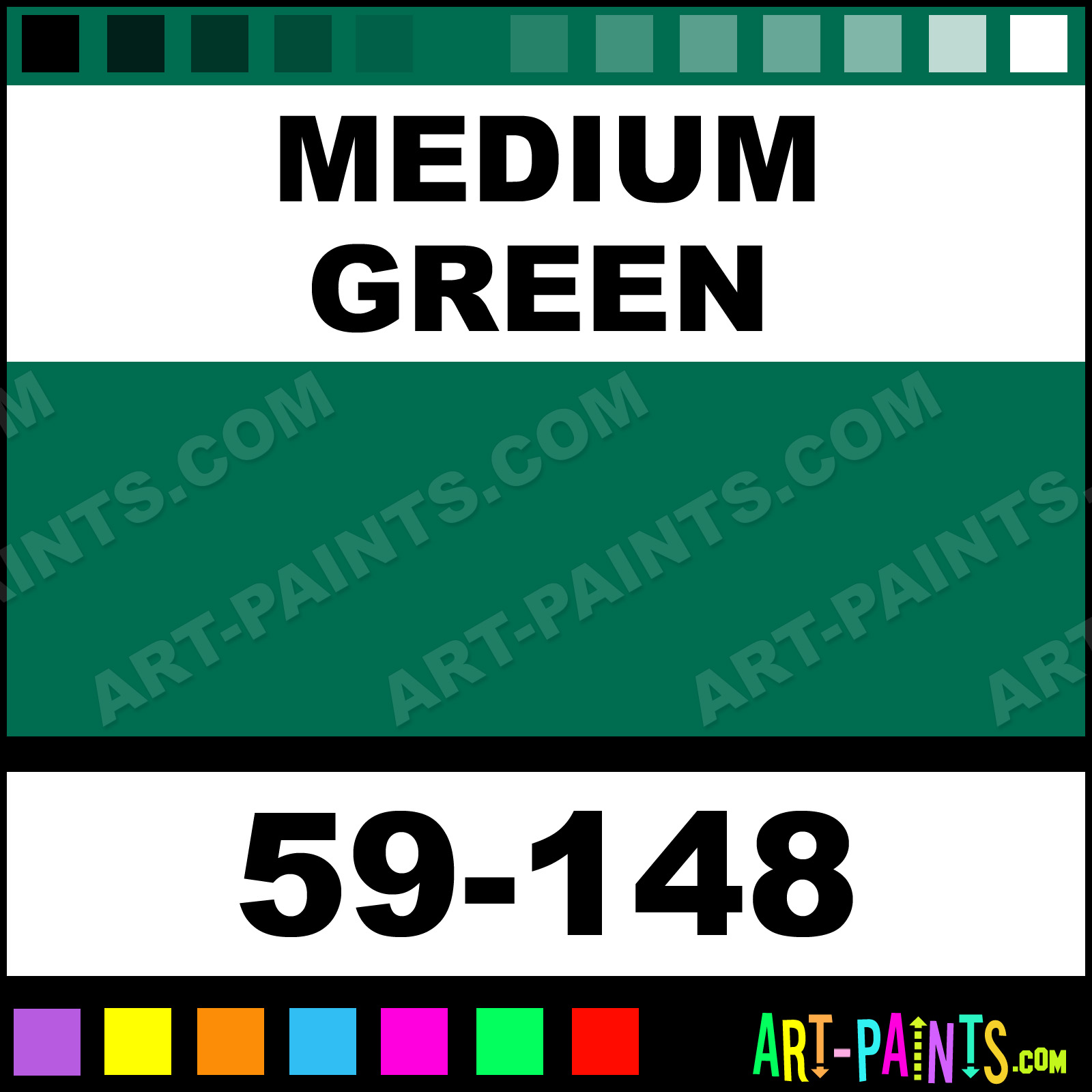 This beautiful 59000 Series Ink Enamel shade is called Medium Green, and comes from a company called Naz-Dar. Their product number, along with the HTML color code, RGB, and CMYK codes are listed below. This Beautiful Shade of Medium Green and others can be found in the Naz-Dar 59000 Series Ink Art Paint Gallery! Also be sure to browse through the other wonderful Professional Color Galleries to see more of Naz-Dar 59000 Series Ink Enamel Brand Paints and other Paint Manufacturers. And as always, Paint Paint Paint! -Art-Paints.com