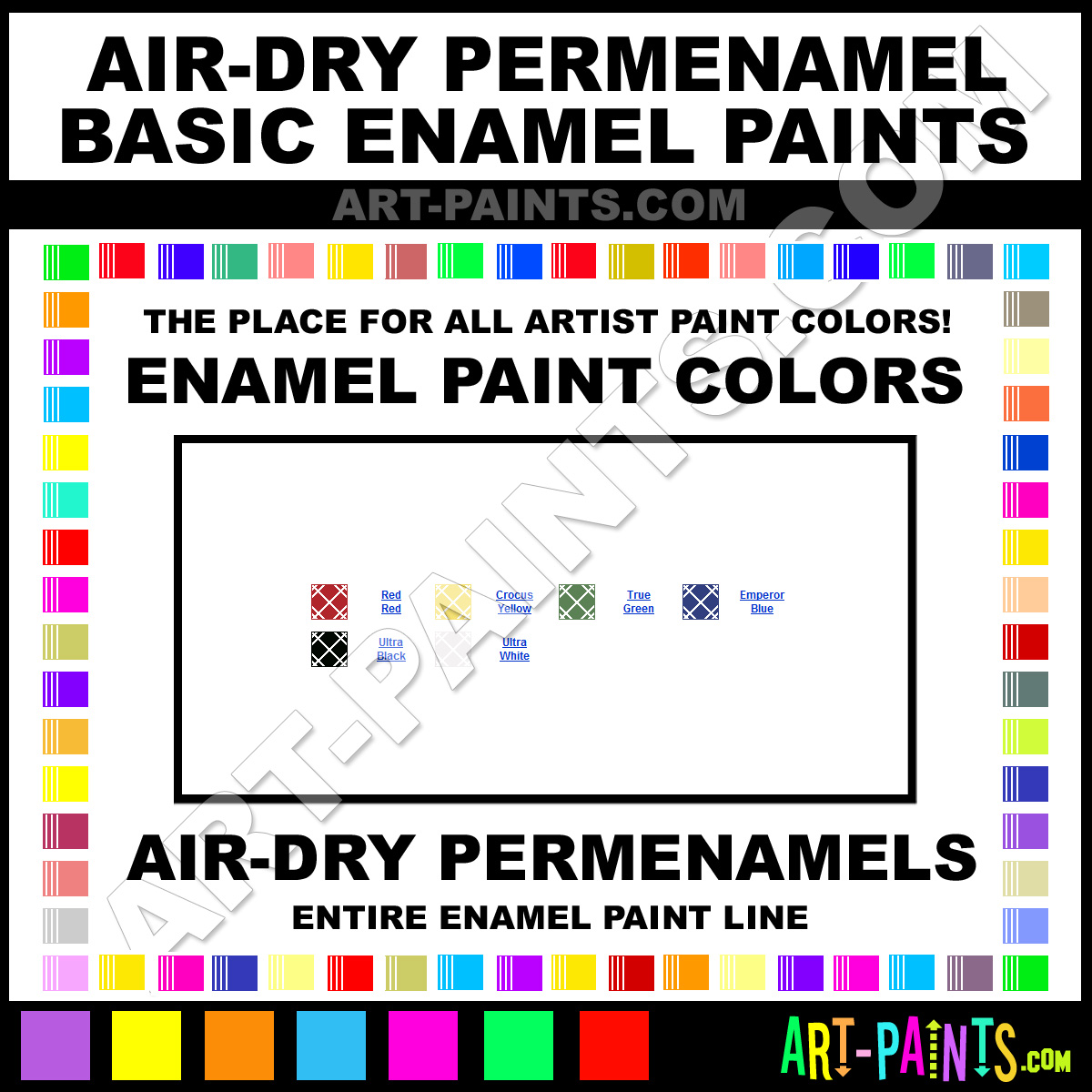 PermEnamel knows Enamel paints! They make a wonderful brand of paint called PermEnamel Basic Kit Enamel Colors that suits all types of artists. They strive to perfect the process of color and are one of the most popular Enamel Paint Brand companies in the world. Enjoy their entire paint brand collection from the list below. PermEnamel makes wonderful Artists Paints that everyone is sure to enjoy! Choose an Enamel Paint Color below to view that Hue and all their great related color paints. Paint on!     -Art-Paints.com
