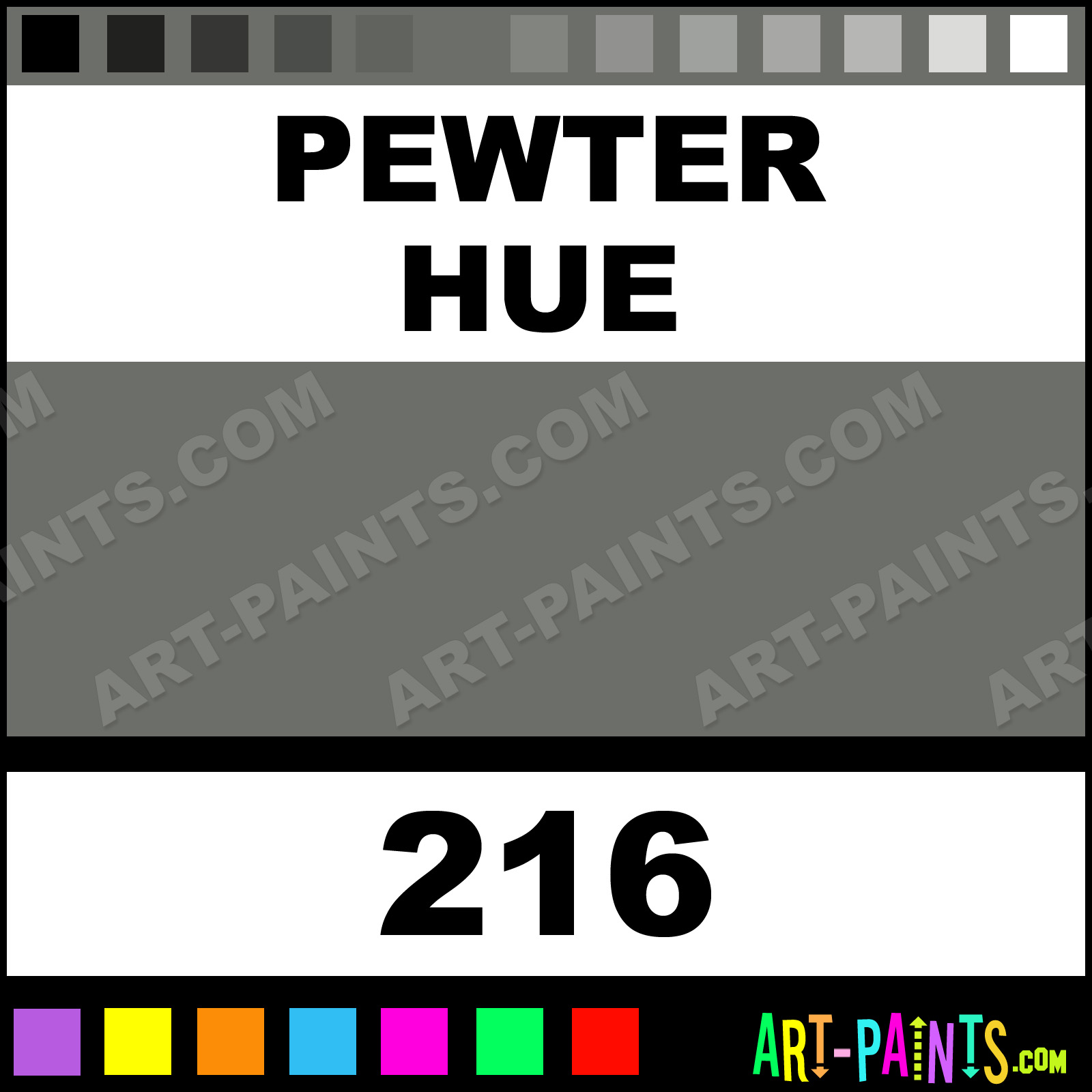 This beautiful Fast Dry Enamel shade is called Pewter, and comes from a company called Plasti-Kote. Their product number, along with the HTML color code, RGB, and CMYK codes are listed below. This Beautiful Shade of Pewter and others can be found in the Plasti-Kote Fast Dry Art Paint Gallery! Also be sure to browse through the other wonderful Professional Color Galleries to see more of Plasti-Kote Fast Dry Enamel Brand Paints and other Paint Manufacturers. And as always, Paint Paint Paint! -Art-Paints.com