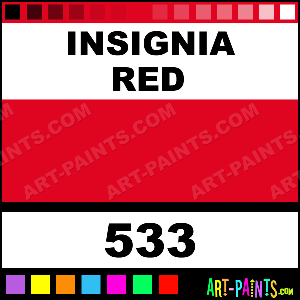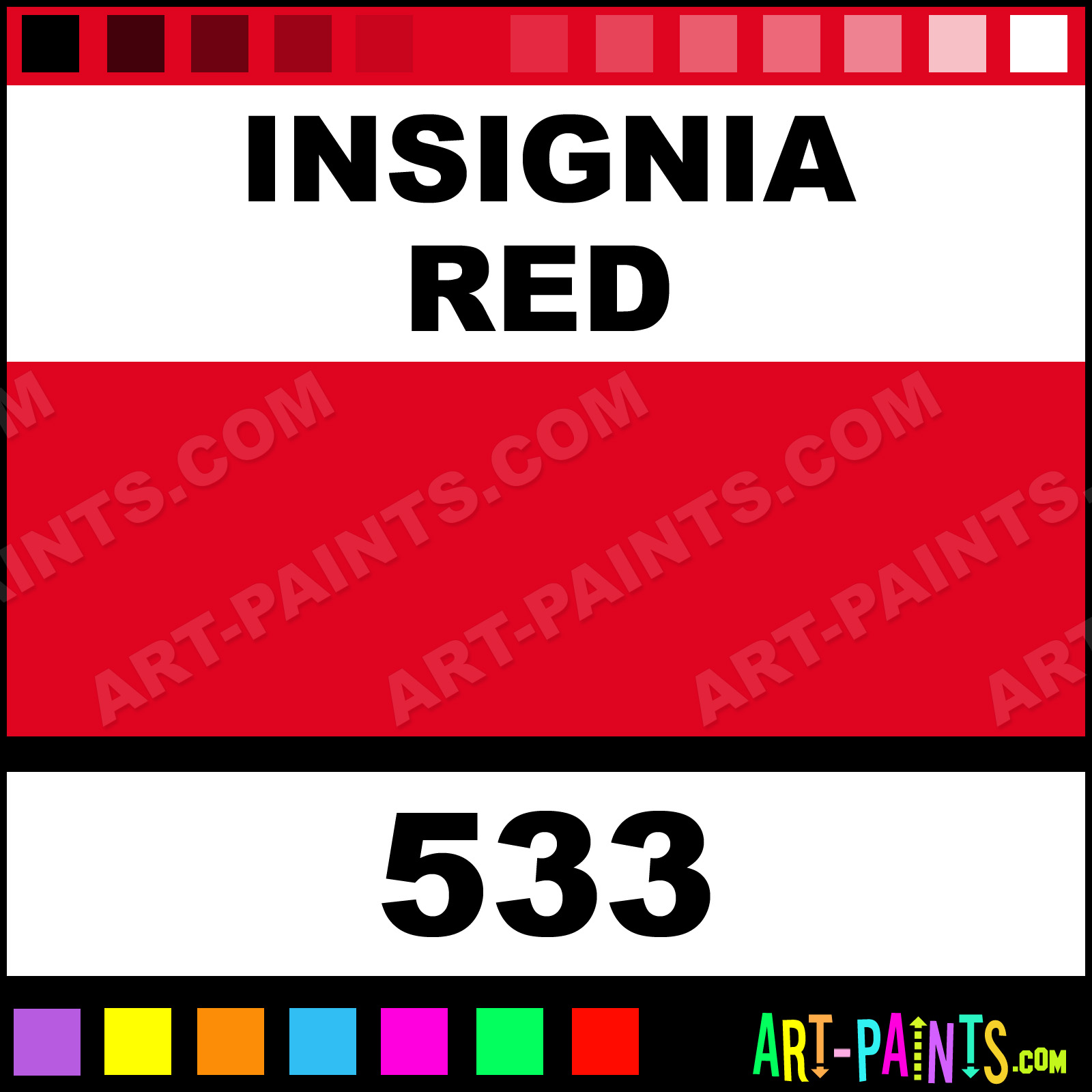 This beautiful Spray Paint Enamel shade is called Insignia Red, and comes from a company called Plasti-Kote. Their product number, along with the HTML color code, RGB, and CMYK codes are listed below. This Beautiful Shade of Insignia Red and others can be found in the Plasti-Kote Spray Paint Art Paint Gallery! Also be sure to browse through the other wonderful Professional Color Galleries to see more of Plasti-Kote Spray Paint Enamel Brand Paints and other Paint Manufacturers. And as always, Paint Paint Paint! -Art-Paints.com